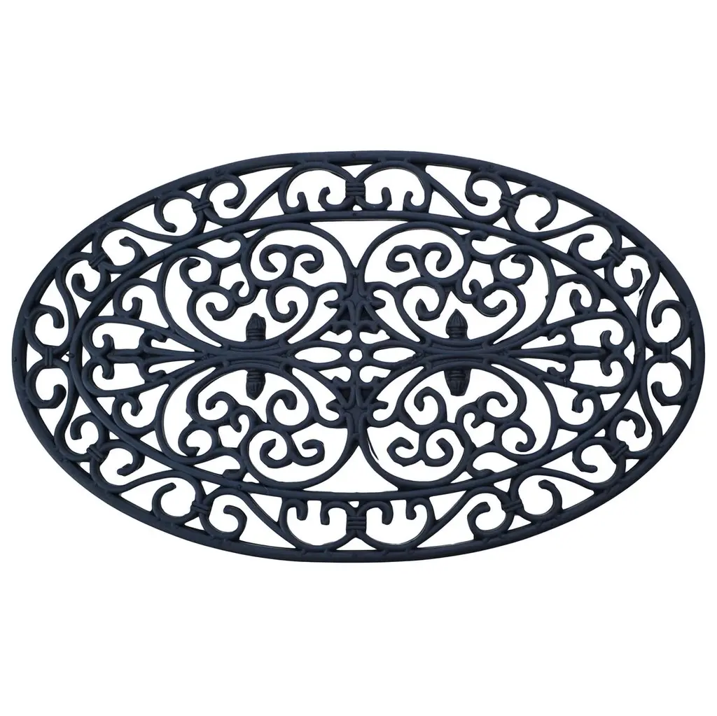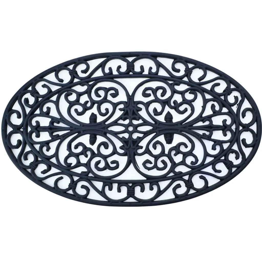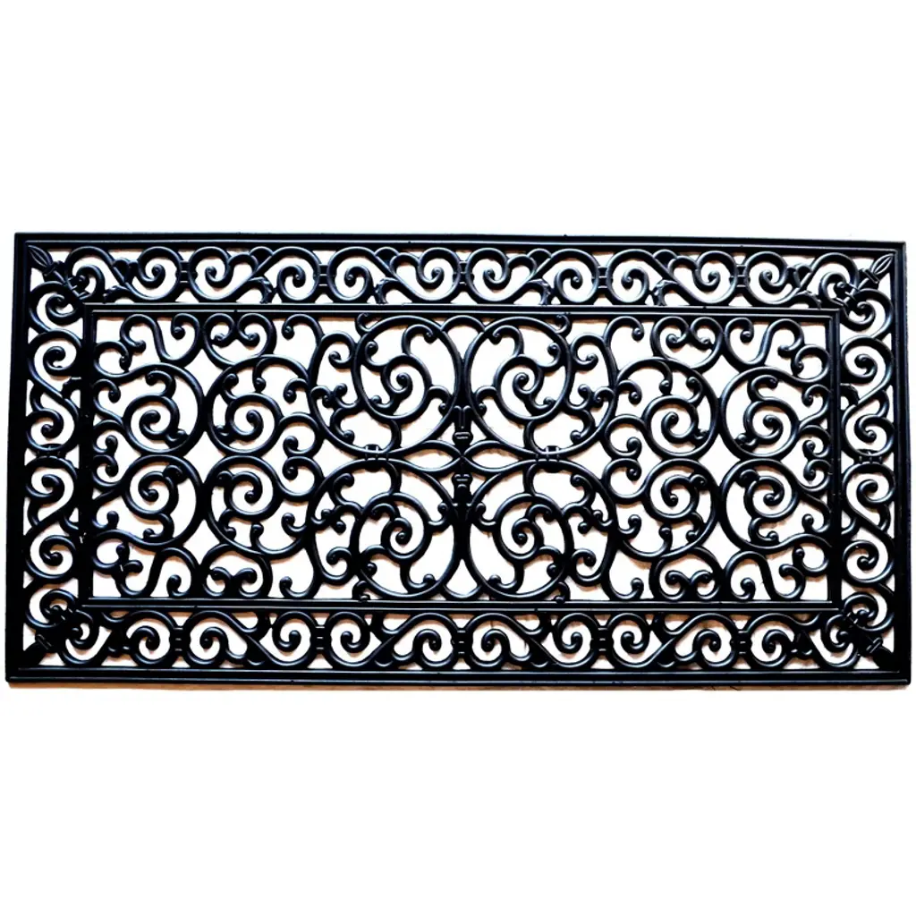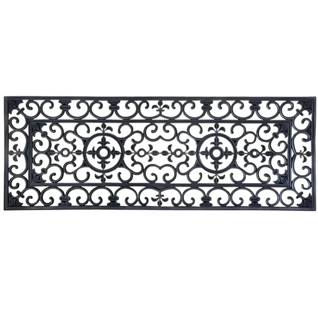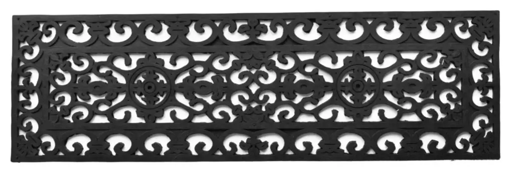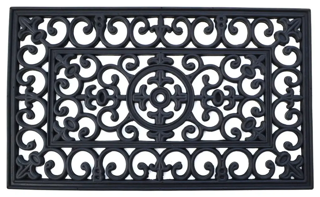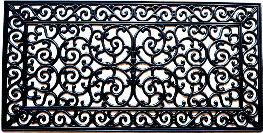 Wrought iron rubber mats mixes vulcanized natural rubber and recycled rubber to form an elegant mat that is resistant to dust, skidding, and is durable. These mats are optimal for areas exposed to moisture such as pool sides. These mats are about 1/2" thick.