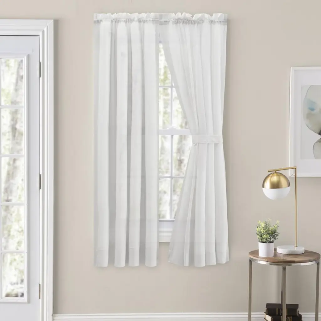 Ellis Curtain Cotton Voile 1.5" Rod Packet Tailored Curtain Panel Pair For Windows 80" X 72" White