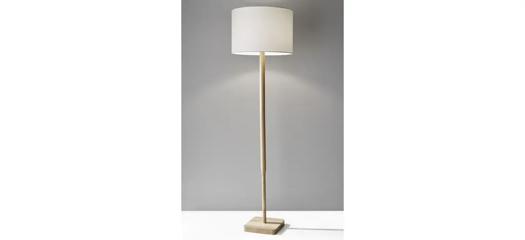 The Ellis Floor lamp is a simple silhouette that allows natural materials to shine. Natural wood grain is paired with a textured fabric to create an elegant design that suits all styles. A three-way rotary switch is located conveniently on the socket and a cord comes neatly out of the base. The 3-way rotary socket switch will only work with a 3-way light bulb, otherwise this lamp will function with simple on/off switch at its highest setting. This lamp is smart outlet compatible. Bulb is not included.