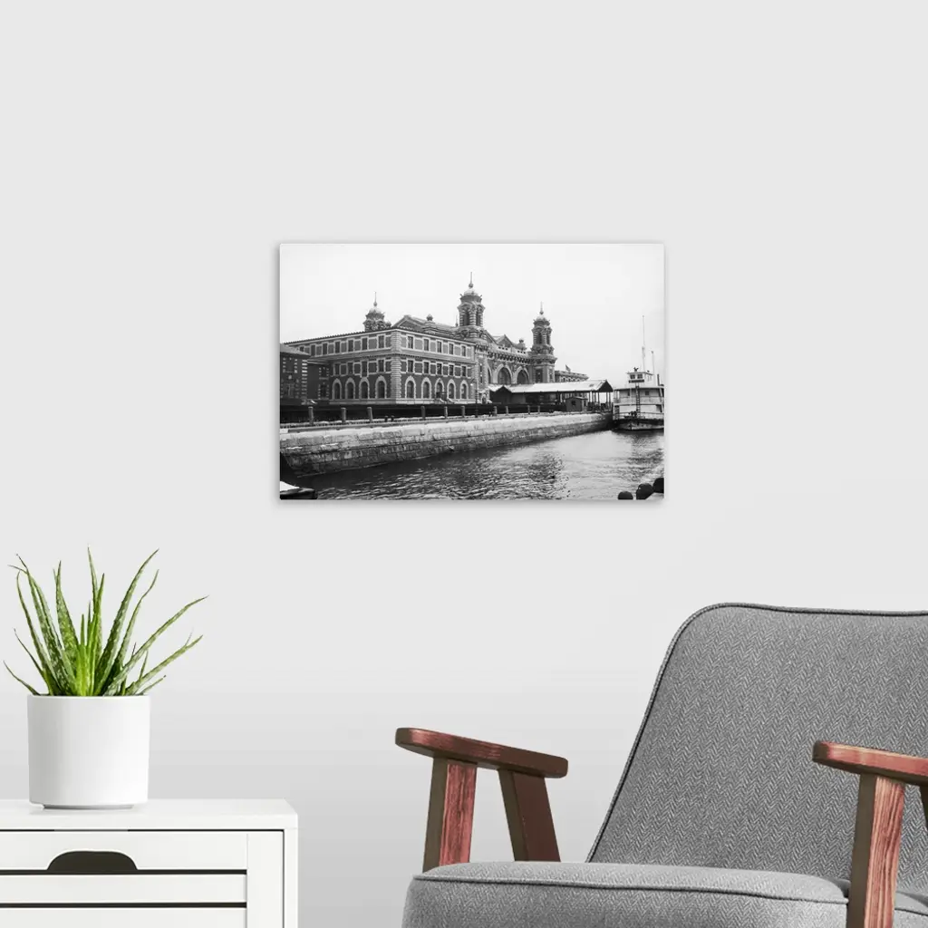 The main building at the immigration station in New York Harbor, 1912.