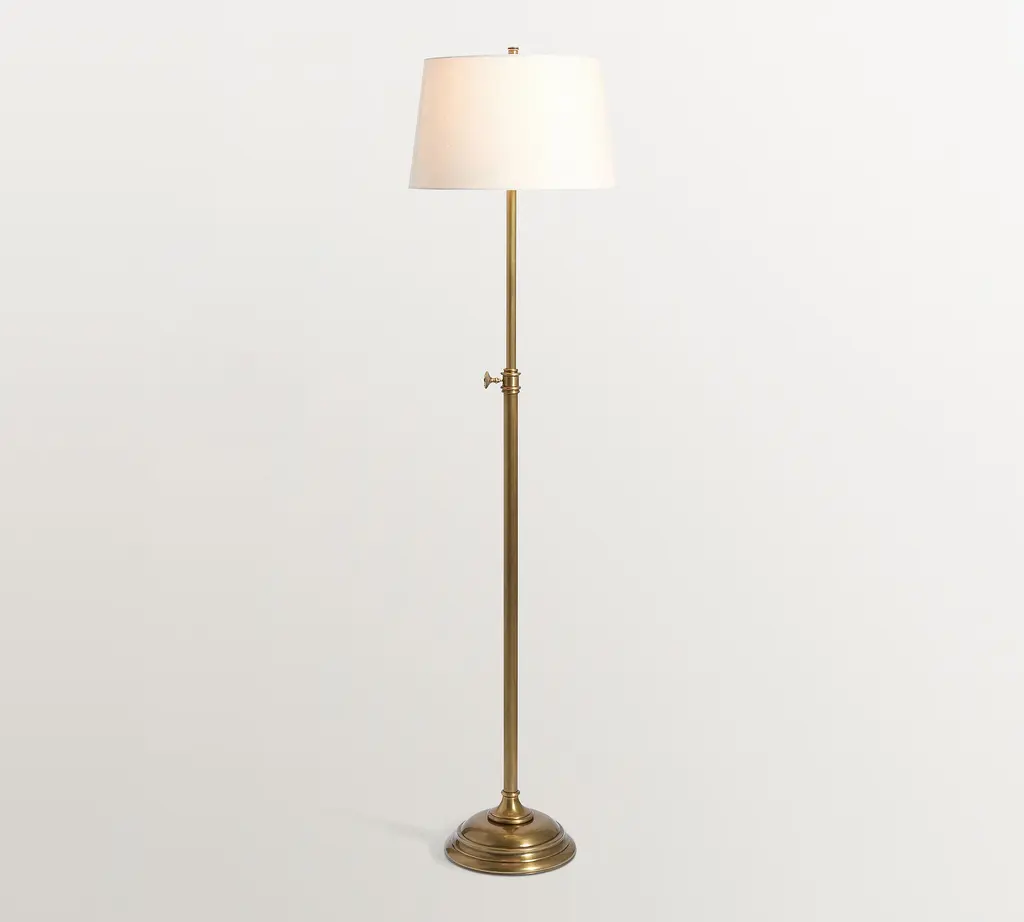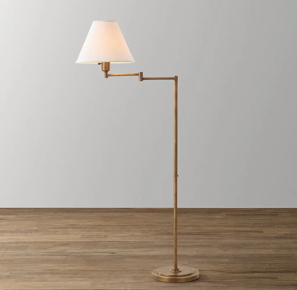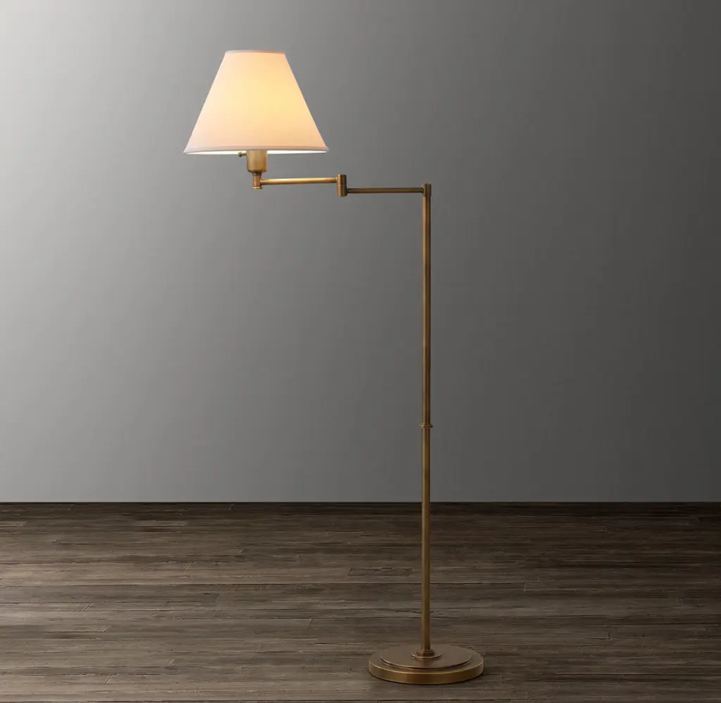 Ellis Swing-Arm Floor Lamp with Tapered Shade - Antiqued Brass