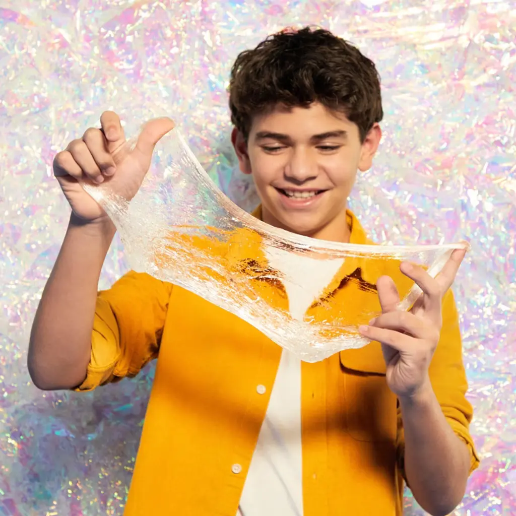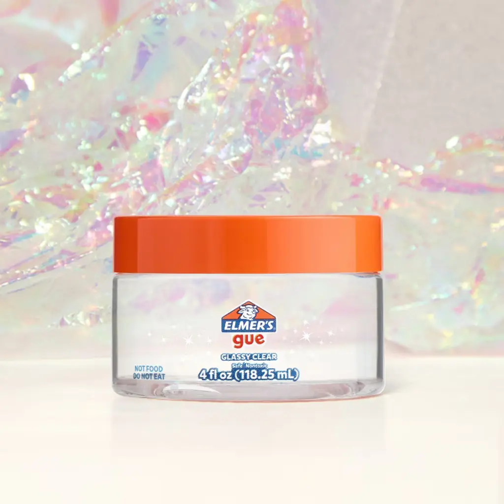 Put away the mixing bowls and spatulas and discover the fun of Elmer’s Gue! It’s a premade slime that comes ready to play with right out of its slime container. This batch is a Glassy Clear slime that you can see right through, making it the perfect base for mixing in fun add-ins. Stretch it, squish it, twist it; explore all the fun ways to play with Elmer’s Gue!