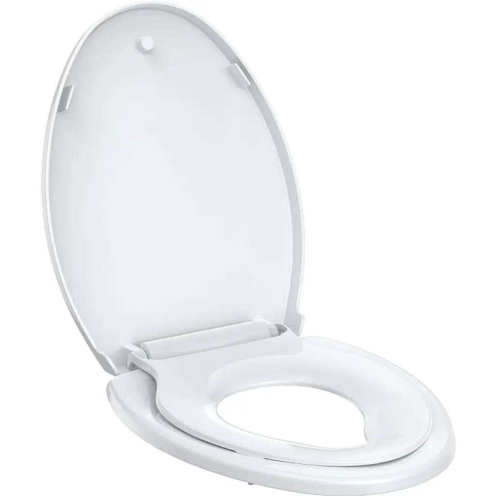 Elongated Toilet Seat With Toddler Seat Built In - White - 1Pcs
