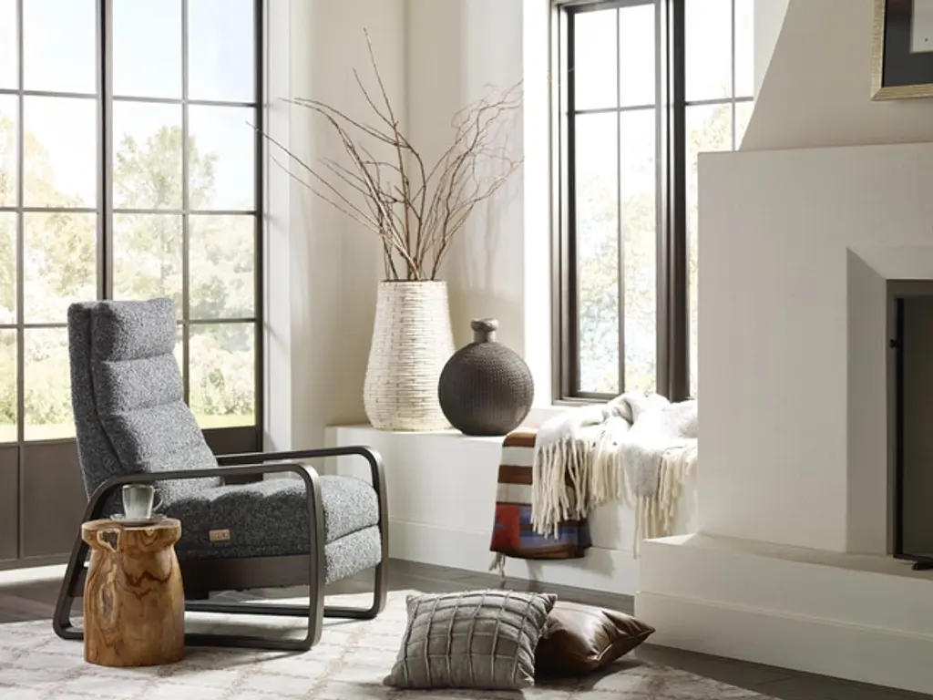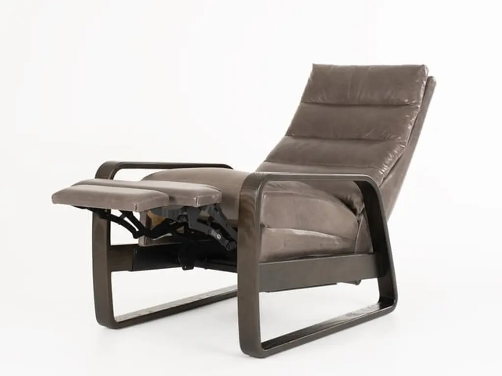 *Also available in fabric and other leathers* The Elton Re-Invented Recliner chair takes design cues from classic Scandinavian ski sleds: sleek yet robust construction providing comfort beyond expectation. Wooden arms are formed into soft geometric shapes, making this recliner chair appear as though it is sliding across the terrain. Experience the invisible mechanism while you recline into its down-filled channel-tufted back and seat cushions. Enjoy the ultimate ride into your comfort zone. Expect the unexpected. Offering the best of both worlds, our Re-Invented Recliner collection is the perfect choice for design enthusiasts looking for premium comfort in a recliner along with style. The unique, hidden, mechanism folds in and out from the base of the recliner. When hidden away, these recliners are a chic, fashion-forward piece that breaks the stereotypes of traditional, bulky recliners. We’ve engineered them with style being as equally important as comfort, so there is no trade off. Powered reclining options are available with an easy push-button control panel or choose the standard, smooth, push back option. Customize it to suit your style by specifying a back height that works for you.