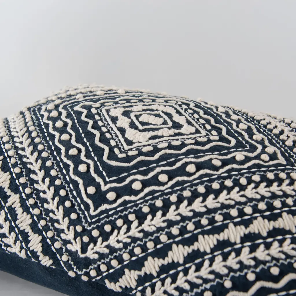 Embroidered Medallion Geometric Lumbar Throw Pillow - Blue / Down Alternative