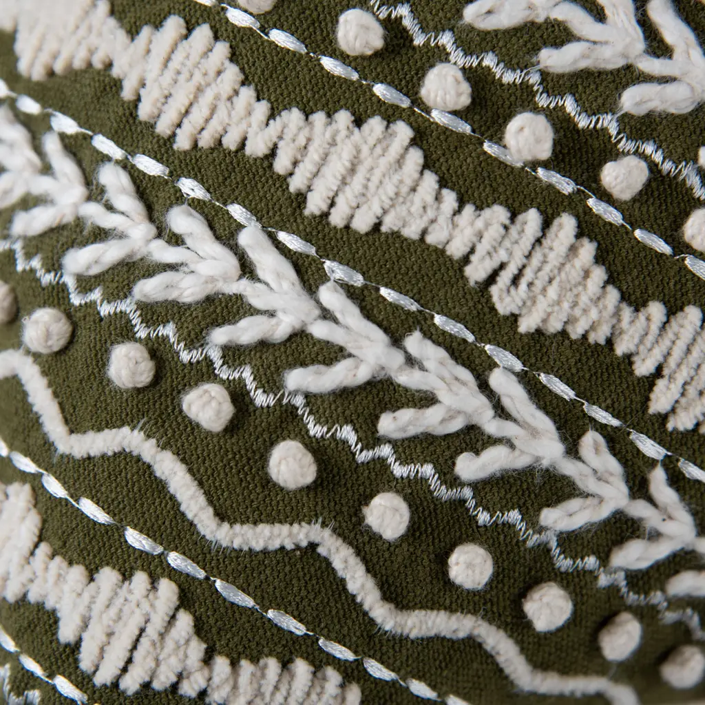Embroidered Medallion Geometric Lumbar Throw Pillow - Green / Down Alternative