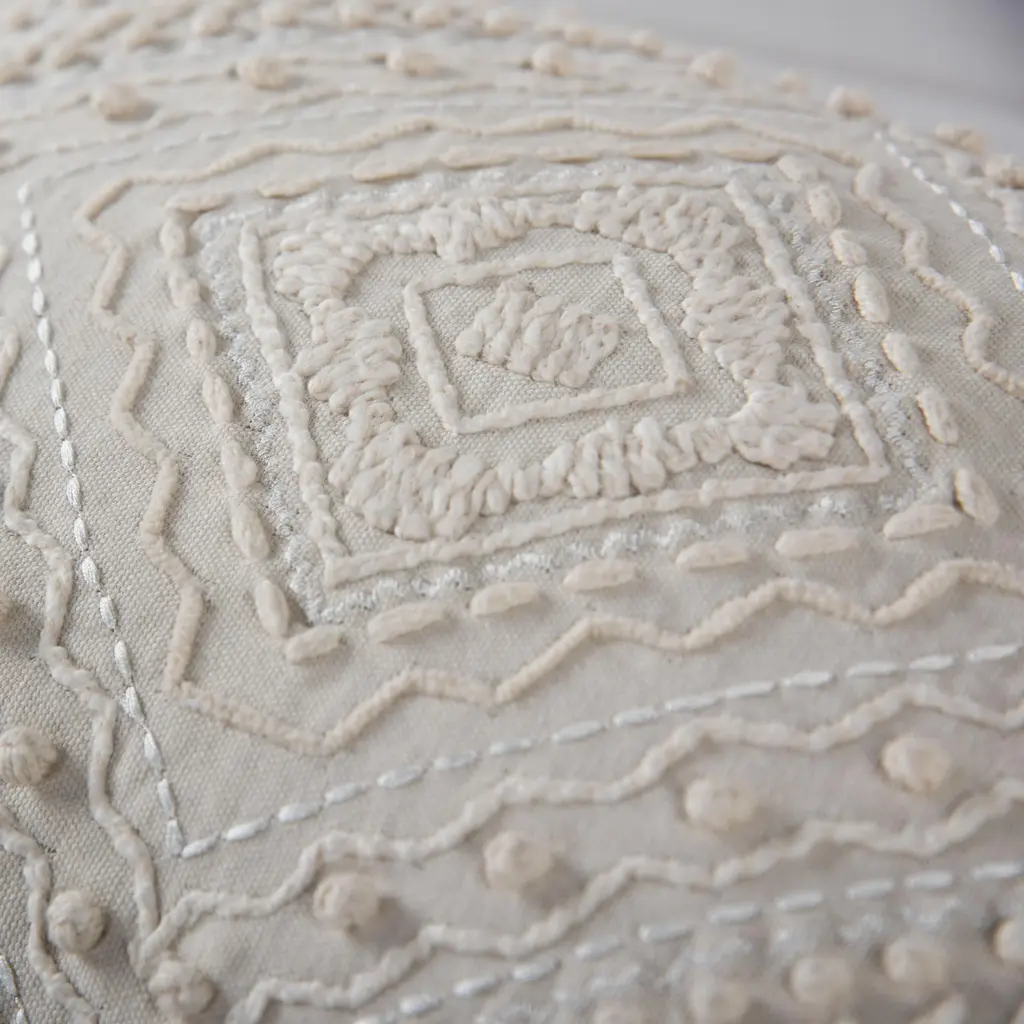 Embroidered Medallion Geometric Lumbar Throw Pillow - Natural / Down Alternative