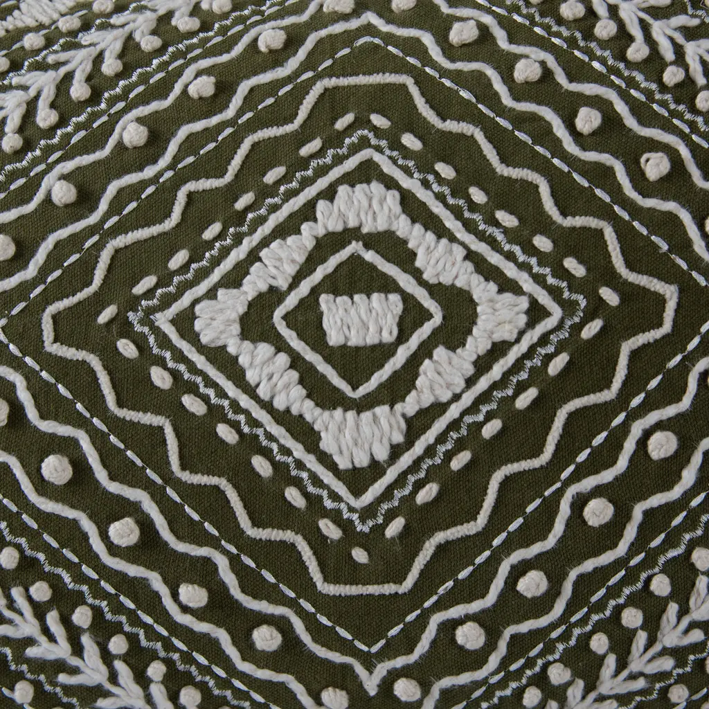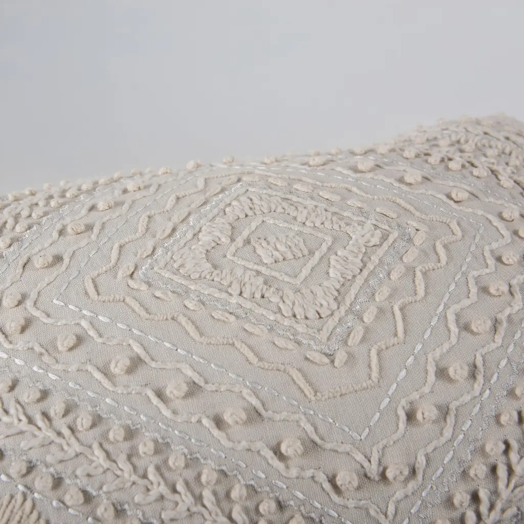 Embroidered Medallion Geometric Lumbar Throw Pillow - Natural / Polyester