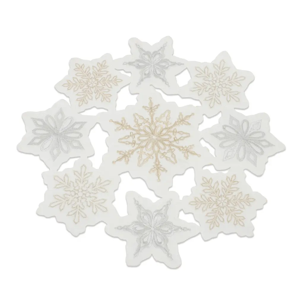 Embroidered Snowflake Doily (Set Of 3) - White;gold; Silver
