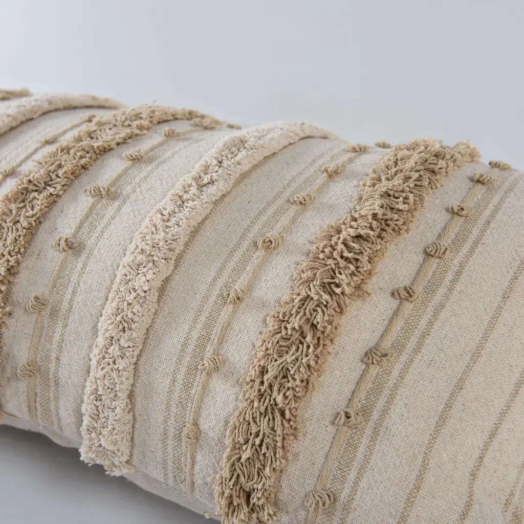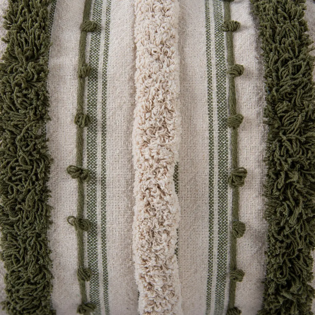 Embroidered Stripe Lumbar Throw Pillow - Green / Down Alternative