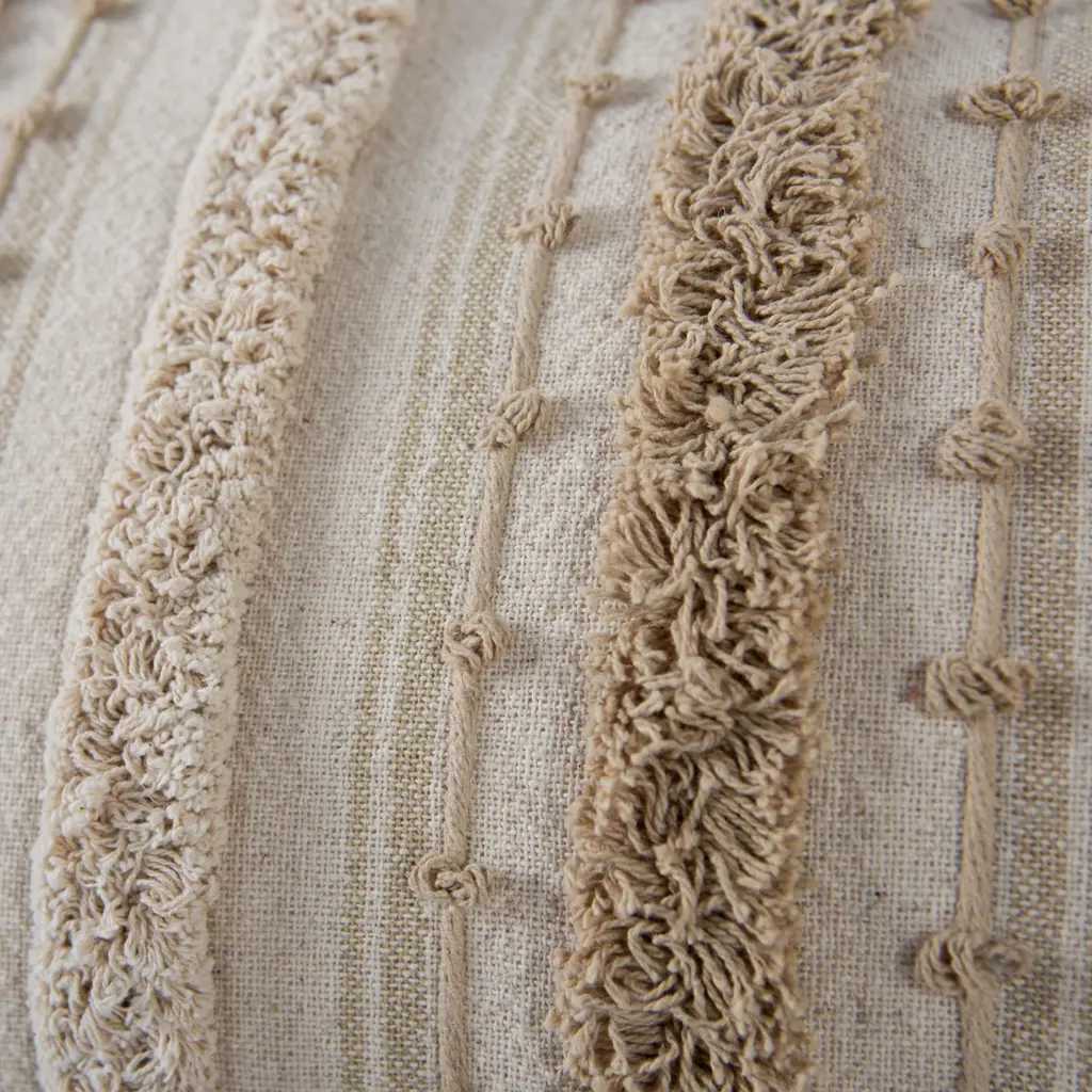 Amusing eyelash fringe and corded semi-poms give this Throw Pillow a fanciful texture that is pleasing both visually and through touch. The pattern runs completely to the knife edge where it joins with a solid Ivory back with a hidden zipper for ease of cleaning. This pillow will be a great addition to a chair, sofa, or bed in your home.