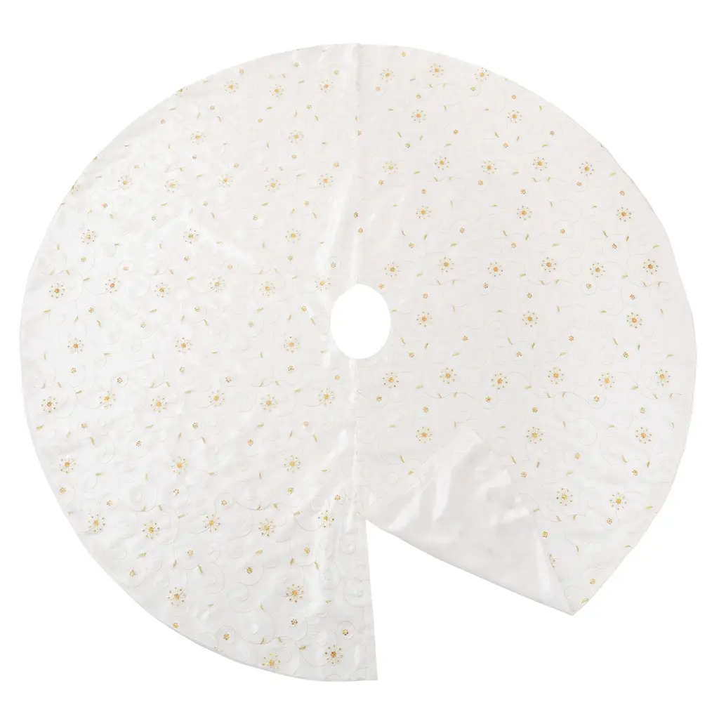 Embroidered Tree Skirt With Sequined Design - Ivory - 72"