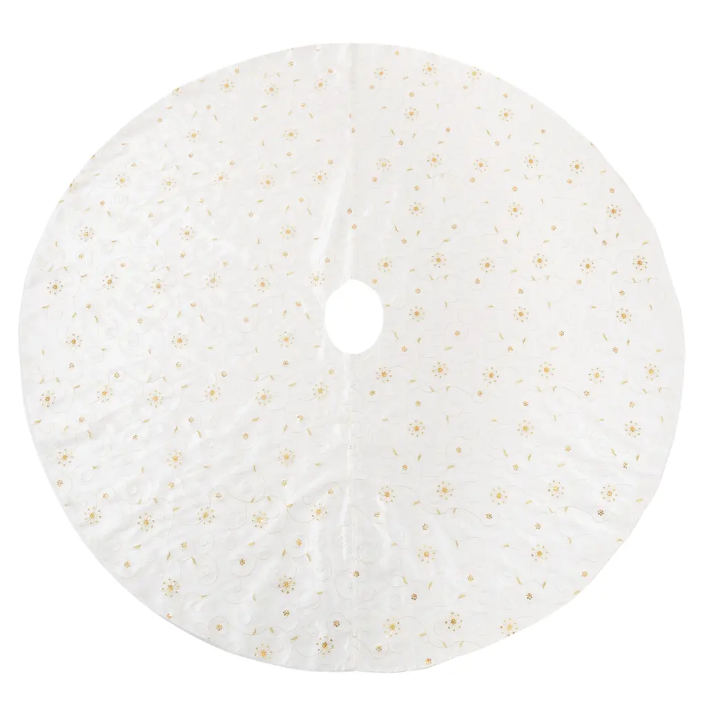 This delicate and glam Sequined Design Embroidered Tree Skirt is the perfect finishing touch to your Christmas Tree décor, providing a chic and stylish base for this central decoration. The sequined design brings a sparkling note to your space, while the delicate embroidery creates subtle texture. It's easy to pair and fit within any holiday décor.Features: