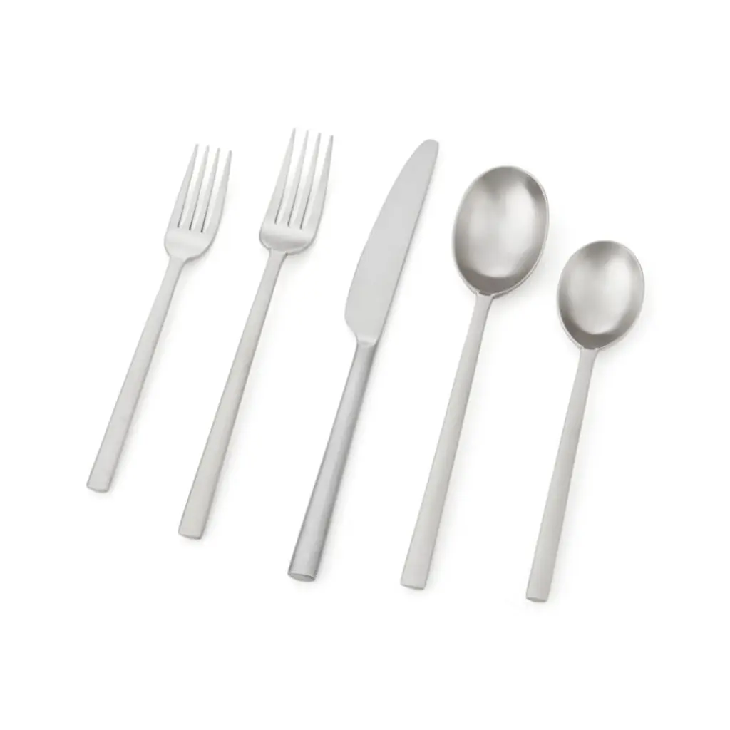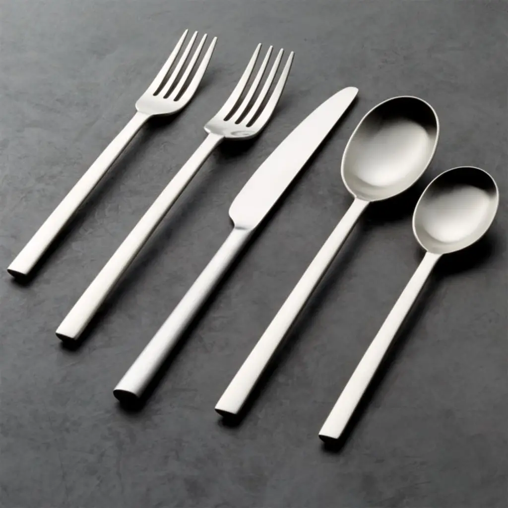 Satin lean and clean for contemporary tables. This quality forged stainless steel flatware pattern is slim-lined with a modern brushed finish.