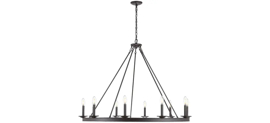 Bold and beautiful, this stunning 10 light Emerly chandelier elevates any dining room or living room with dramatic modern luxury. A designer favorite, its classic geometric metal curves and lines feature an oil rubbed bronze finish that complements any style.