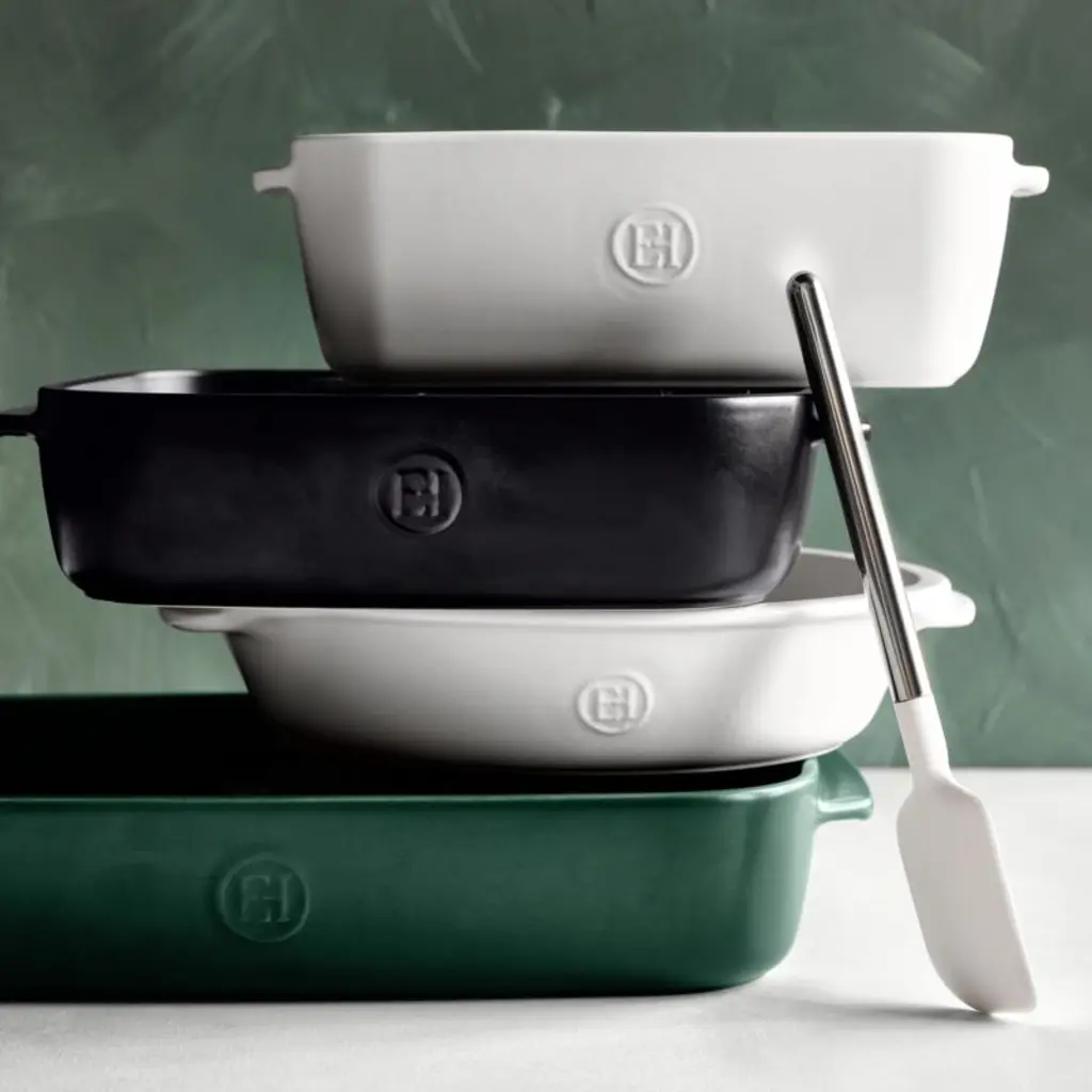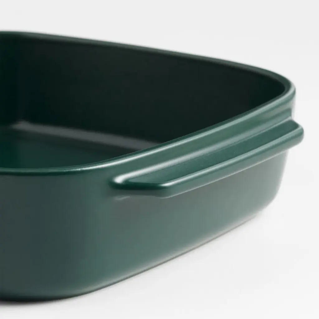 In this beautiful collection designed exclusively for Crate & Barrel, the classic and beloved ceramic bakeware of Emile Henry gets a modern update with softly curved organic lines and refined details. This square baker's clean, rounded corners and minimalistyet functionalhandles go from oven to table for serving mac and cheese, dinner rolls and fruit cobblers. Crafted of Burgundy clay renowned for its superior heat retention, the baking dish is finished inside and out with an exclusive lush matte green glaze that resists chipping, cracking and thermal shock. All of the heirloom-quality pieces in our Emile Henry collaboration make extra-special housewarming, graduation and wedding gifts.Founded in 1850 in France, Emile Henry ceramics embrace modern technology to deliver products that can withstand high oven cooking temperatures, absorbing, distributing and retaining heat evenly.
