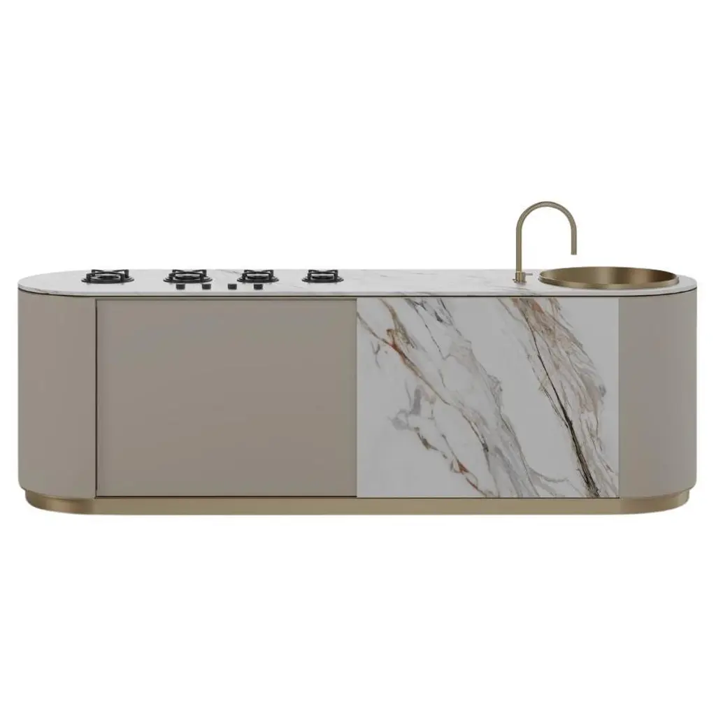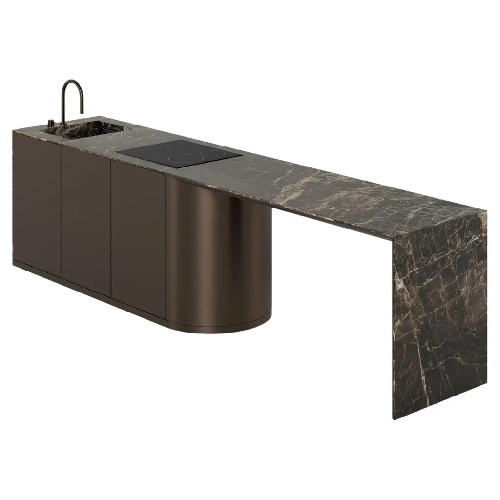Emily by EMU D&S Lab is the new modular aluminium outdoor kitchen with a stoneware top, consisting of a wide range of assembleable elements that can be laid out individually or in combination to create complete, functional solutions. The modules can be open or closed, with intermediate shelves or side containers to accommodate a wide range of cooking, washing and barbecuing needs, or simply provide a handy support surface.The composition includes:- 2 closed modules for sink and mixer tap or induction- 1 stainless steel mixer tap- 1 stainless steel sink- 1 induction cooktop in glass