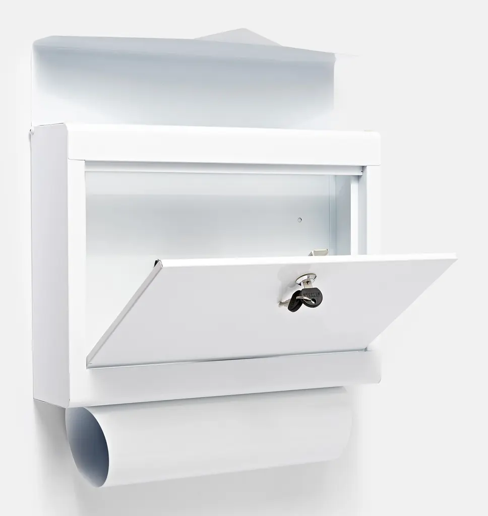 Update your porch with the contemporary Emily Locking Wall Mailbox, featuring a locking mechanism to ensure your mail stays secure. This mailbox features an open tube for oversized mail, such as newspapers or magazines. Crafted from powder-coated stainless steel, it's made to withstand the elements while keeping your mail safe.