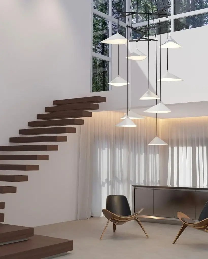 Emily is a series of gorgeous lamps with shades handmade of sheet steel. She is spray painted in a semi-matte or in a high gloss finish. The source of inspiration for Emily is a work by German artist Andreas Gursky. In his series »James Bond Islands« he shows a digitally arranged group of islands in Thailand that seem to float in the ocean, although they are in fact only the tips of mountains Up to 250V (Europe/UK Standard).