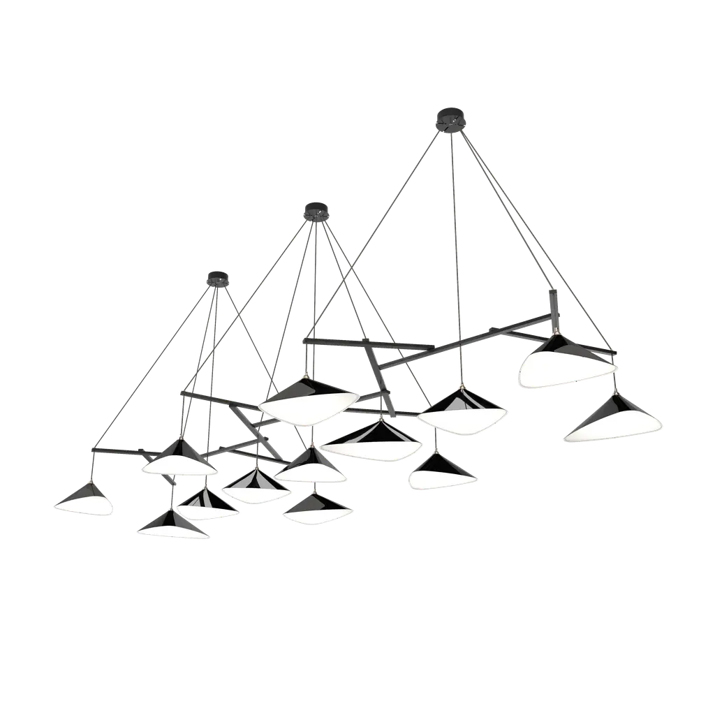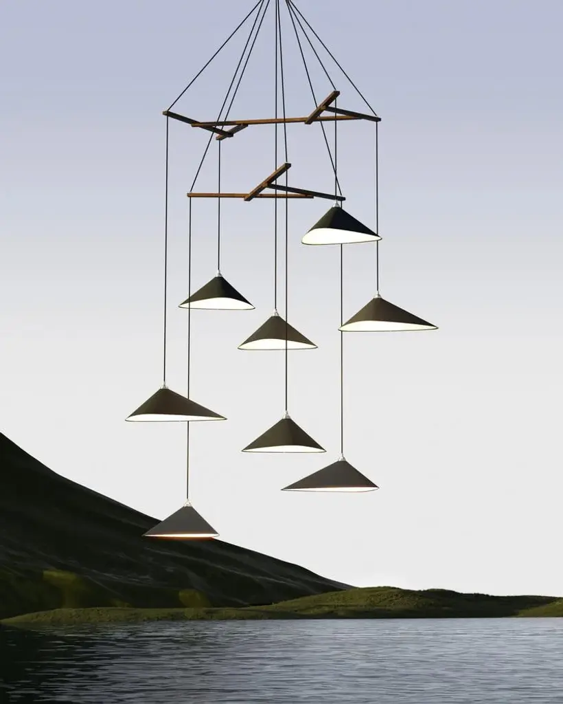 Emily is a series of gorgeous lamps with shades handmade of sheet steel. She is spray painted in a semi-matte or in a high gloss finish. The source of inspiration for Emily is a work by German artist Andreas Gursky. In his series »James Bond Islands« he shows a digitally arranged group of islands in Thailand that seem to float in the ocean, although they are in fact only the tips of mountains Up to 250V (Europe/UK Standard).