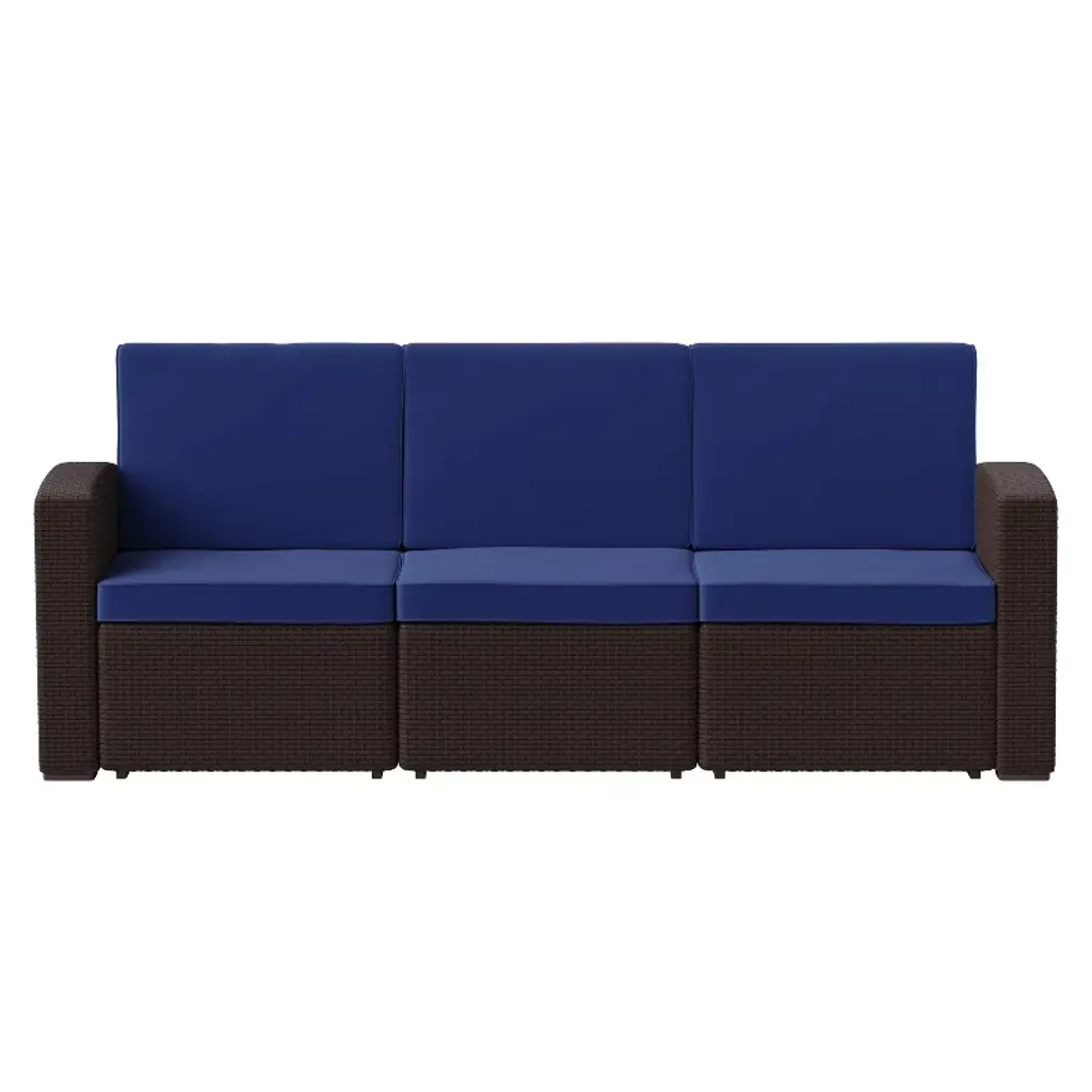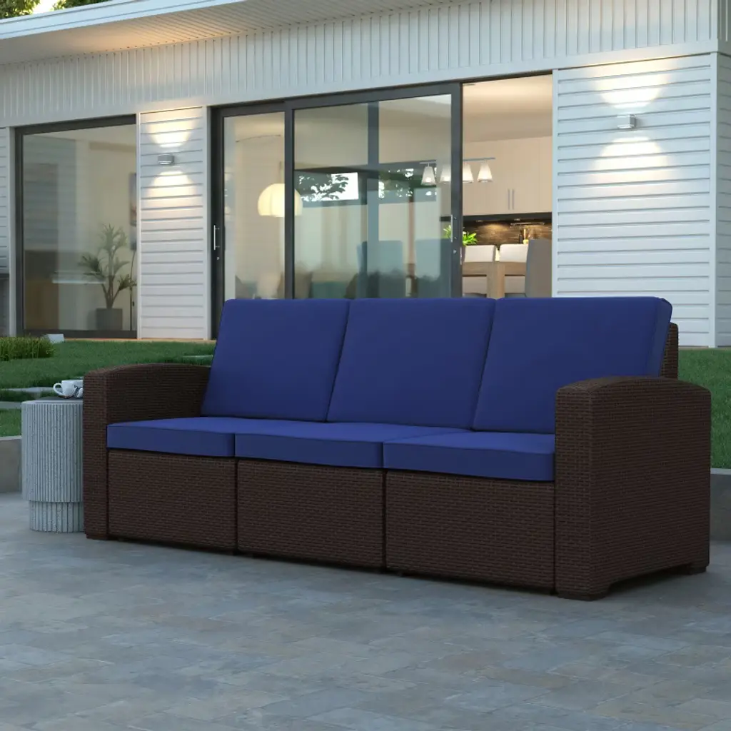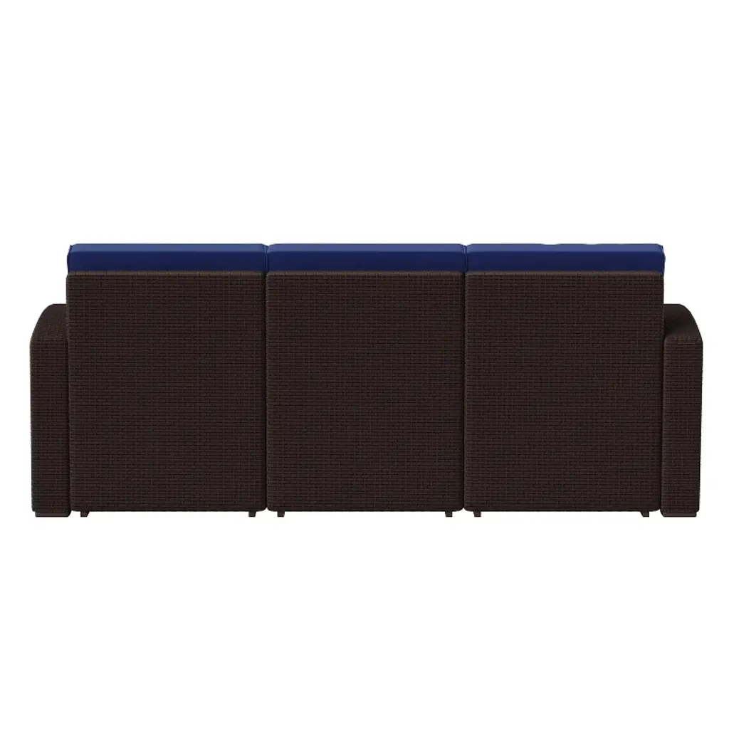 Emma And Oliver Brown Pe Rattan Sofa With All-weather Navy Cushions