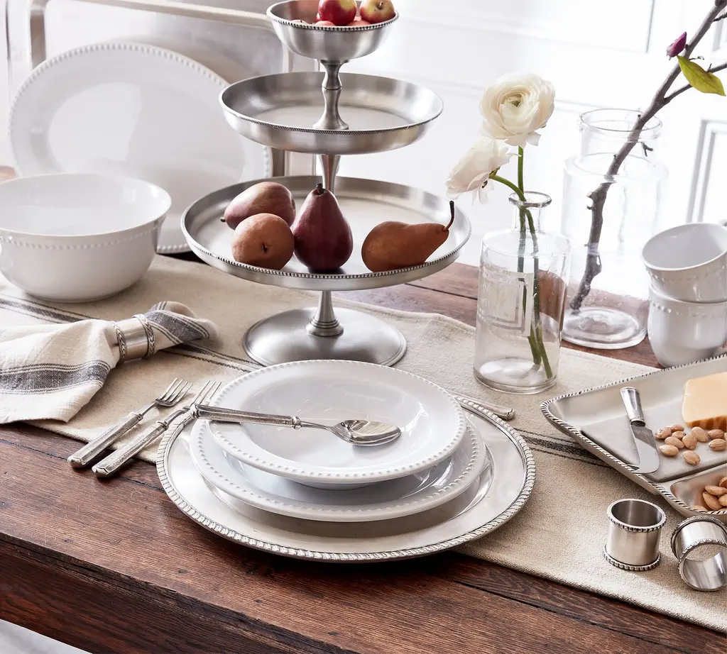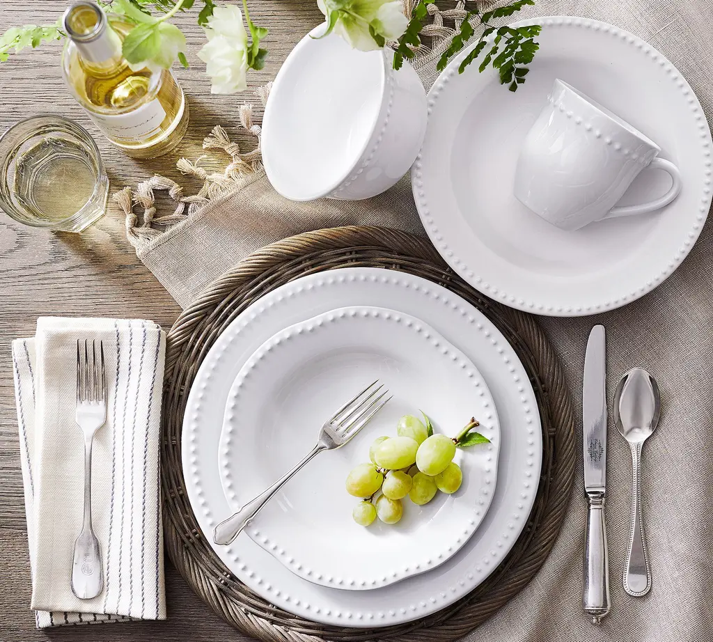 The beaded detail of our Emma Dinnerware evokes the look of an antique set. Beautiful for entertaining yet casual enough for everyday use, each piece in this collection will grace your table in style.