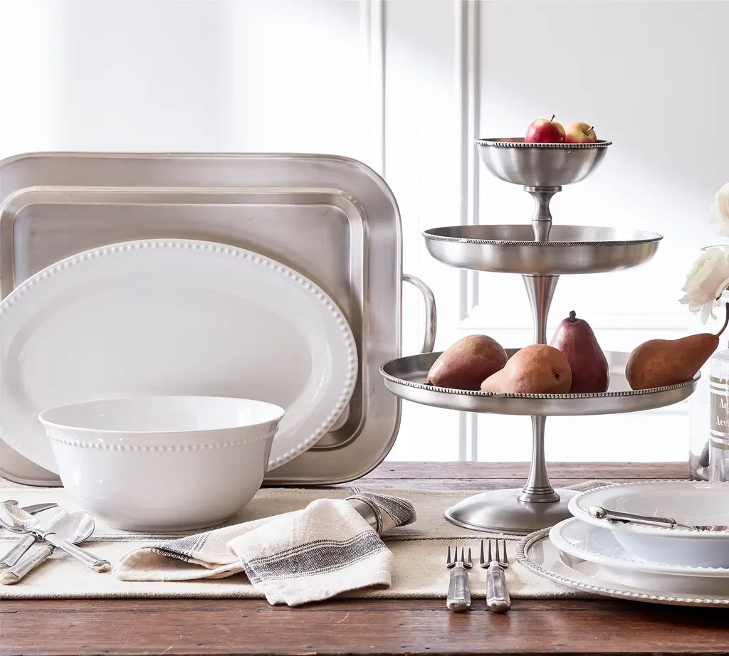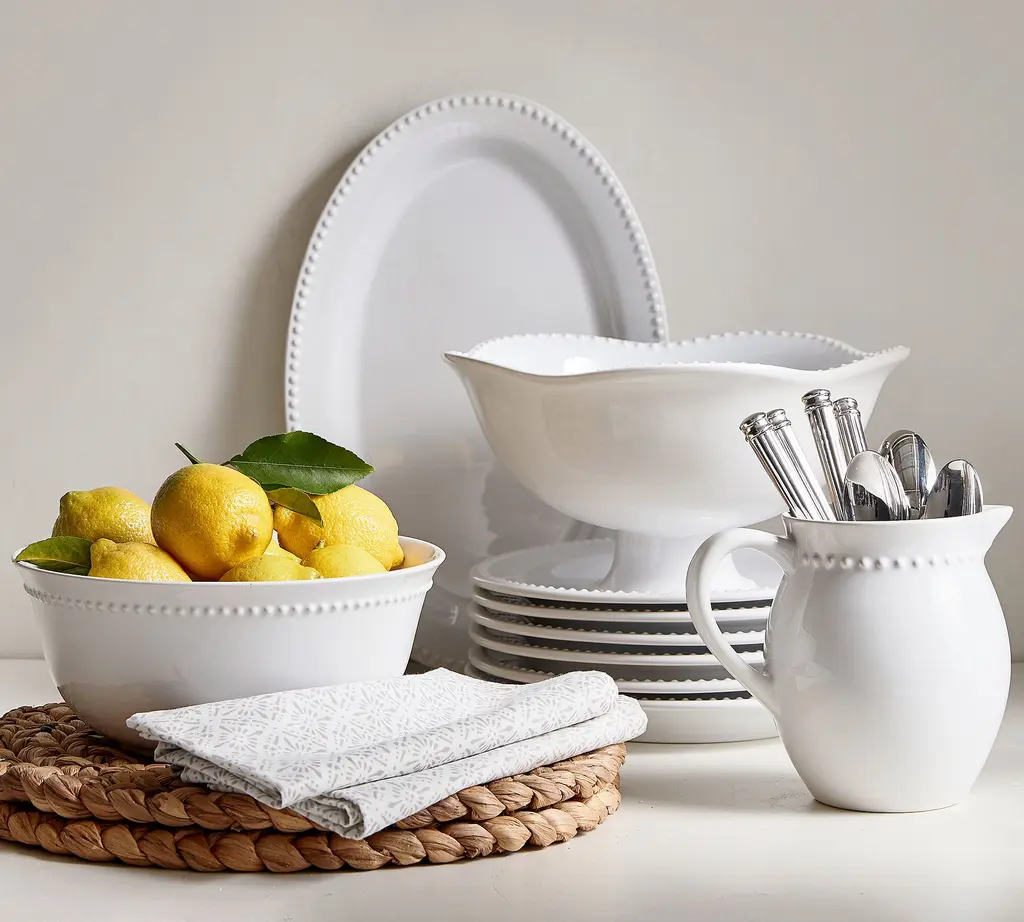 The beaded detail of our Emma Dinnerware evokes the look of an antique set. Beautiful for entertaining yet casual enough for everyday use, each piece in this collection will grace your table in style.