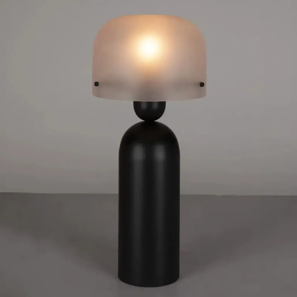 Crafted from industrial-grade steel and frosted glass, the Emma Lamp combines durability with a touch of sophistication. Its matte black finish exudes understated luxury, creating a striking contrast against the soft glow of the frosted glass shades.