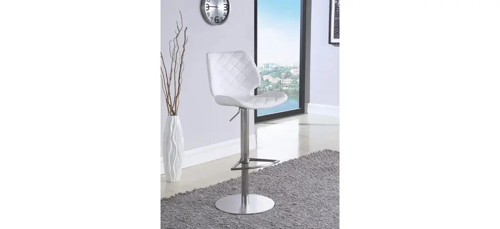 Featuring diamond stitched white faux leather upholstery, this adjustable Emmaus stool would make a great addition to your home setting.