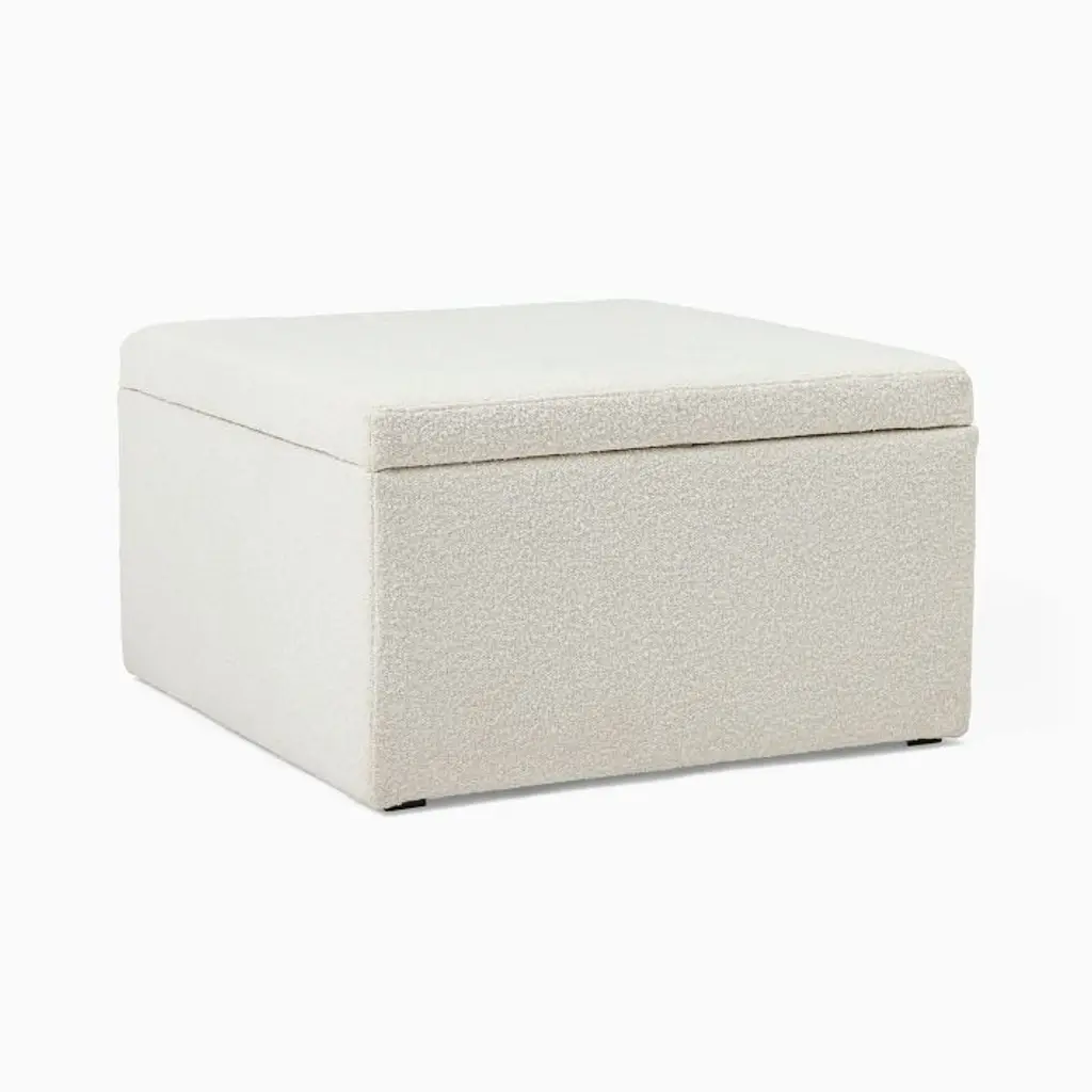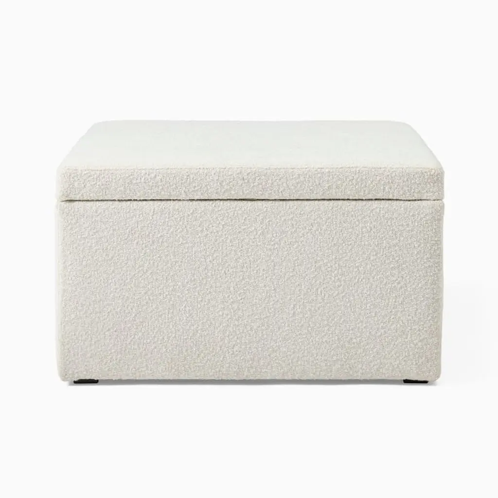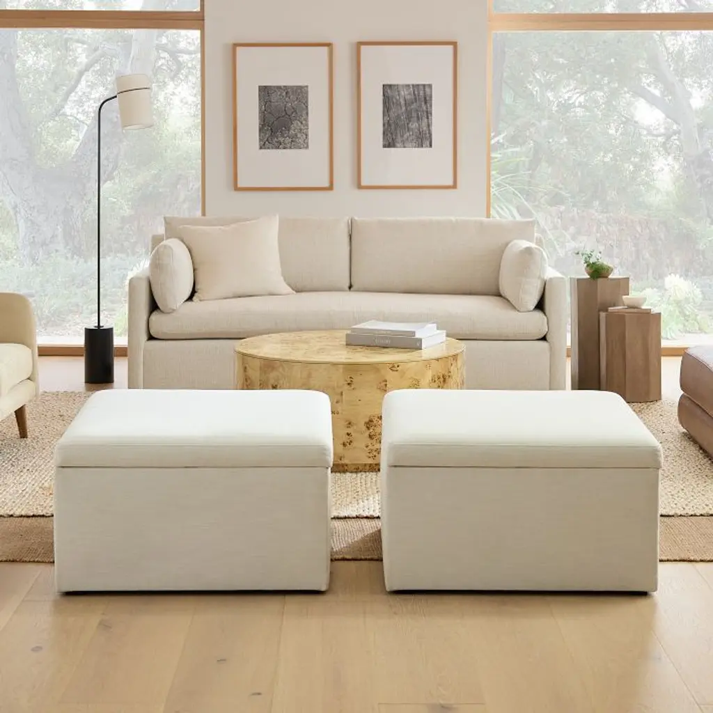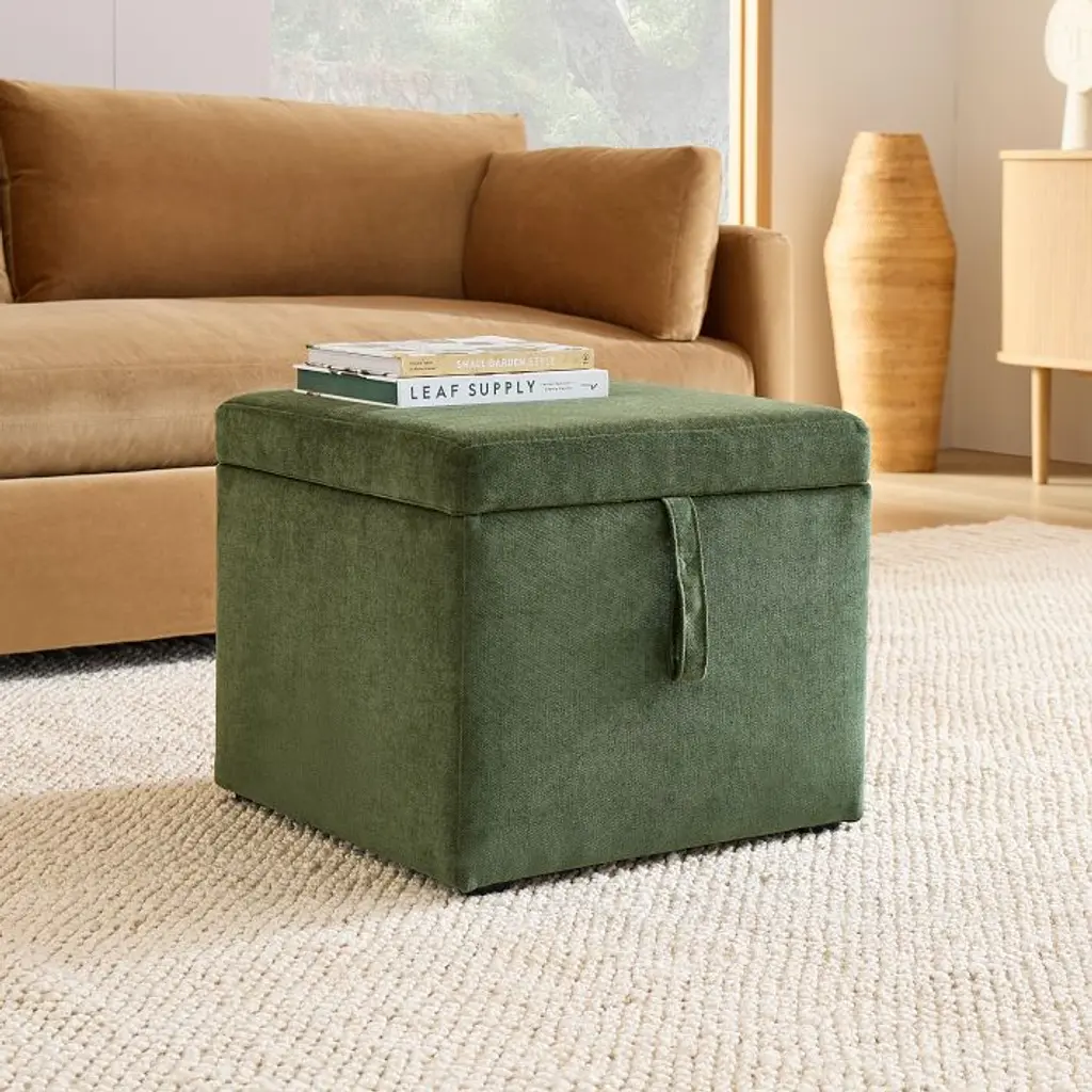 Engineered wood frame. Plastic shadowline support legs. Foam padding. Top lifts up via gas-lift mechanism to reveal storage space. Made in Ukraine.