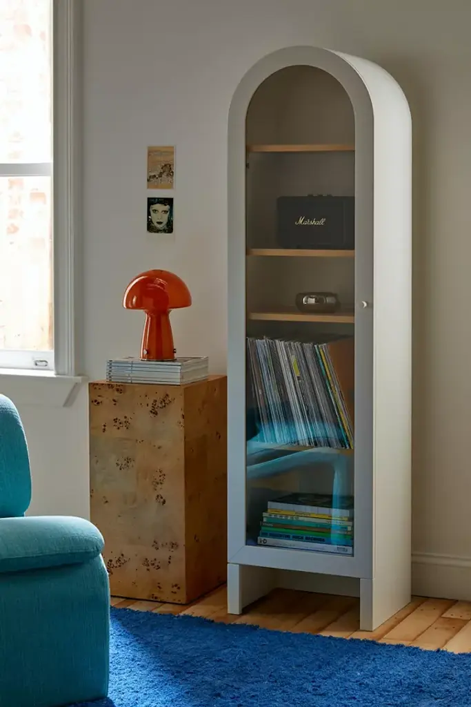 Illuminate your space and create a stunning display of trinkets all-in-one with this side table that doubles as a floor lamp. Made from colorful acrylic with a globe-shaped lamp inside the table. Plugs in to power on. Available exclusively at Urban Outfitters.