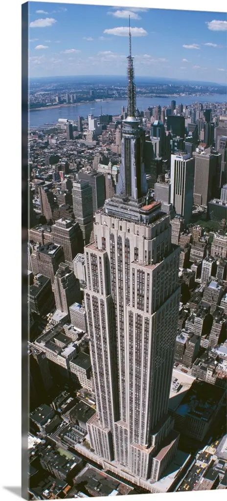 Gallery-Wrapped Canvas entitled 'Empire State Building and One World Trade Center, New York City'. The Empire State Building rising above the New York City skyscrapers, with the One World Trade Center building in the distance. Multiple sizes available. Primary colors within this image include: Peach, Sky Blue, Black, Gray. Made in USA. All products come with a 365 day workmanship guarantee. Archival-quality UV-resistant inks. Canvases are stretched across a 1.5 inch thick wooden frame with easy-to-mount hanging hardware. Canvas is designed to prevent fading.