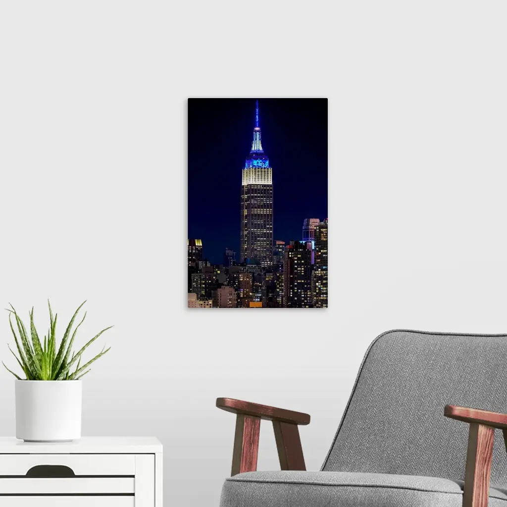 Empire State Building At Night wall art for home and office decor. Discover canvas art prints, photos, mural, big canvas art and framed wall art in GreatBigCanvas.com's varied collections.
