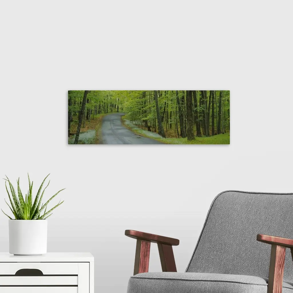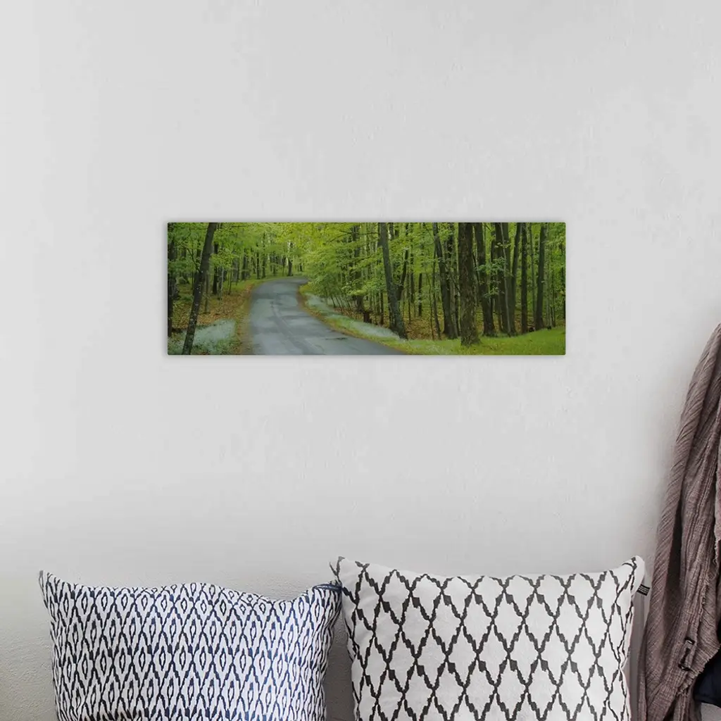 Empty road passing through a forest, Peninsula State Park, Door County, Wisconsin wall art for home and office decor. Discover canvas art prints, photos, mural, big canvas art and framed wall art in GreatBigCanvas.com's varied collections.