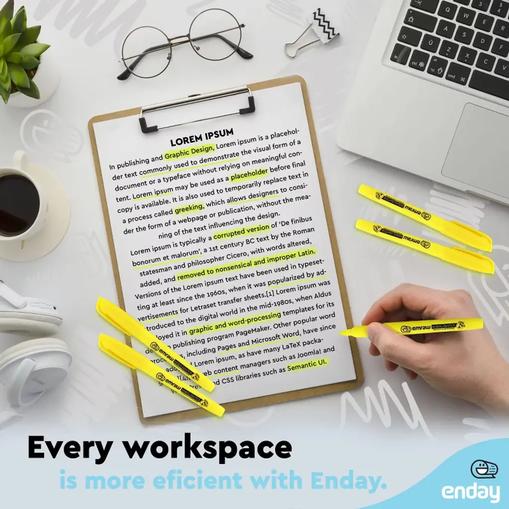 Emraw Yellow Pen Style Fluorescent Highlighter With Pocket Clip (3/pack)