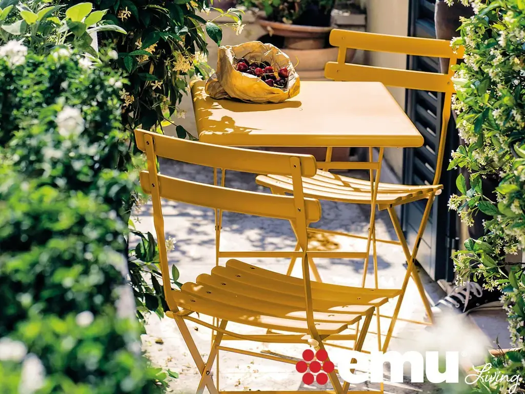 The Arc en Ciel Collection comprises tables and chairs in a variety of sizes and offers a range of colorful solutions. This collection is ideal for balconies or public gardens and the pieces can be folded for easy storage. Deeply dedicated to the 100% Made-in-Italy production philosophy, Emu has been manufacturing some of the world's finest domestic and commercial furniture since 1951. Pioneering in the technical know-how for metal processing and protection, they create pieces that allow their customers to relax in an Italian-style outdoor living space. They are dedicated to innovation, quality, sustainability, and international orientation. The company has a distribution network covering over 85 countries.