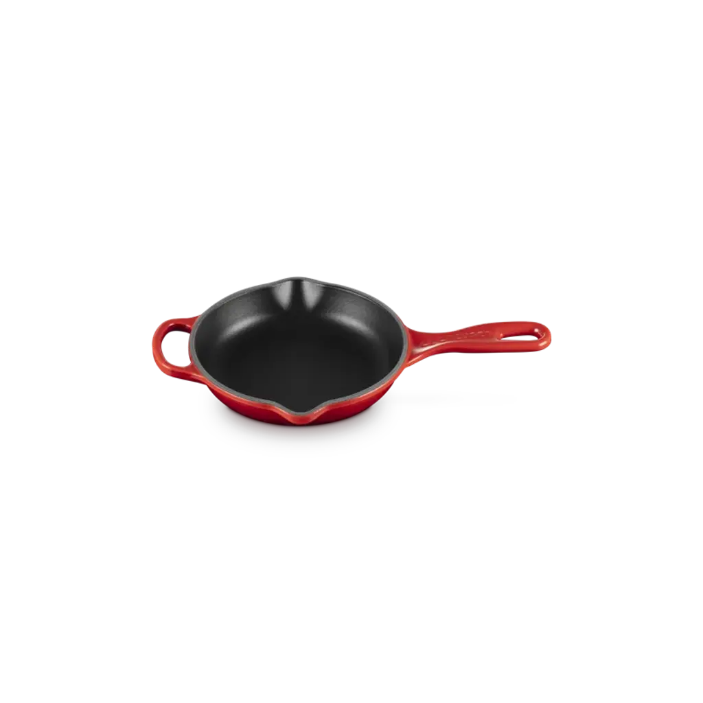Made of fast-heating cast iron, this 10-inch frying pan is coated with a smooth enamel finish in your choice of chic finishes. Versatile for stovetop sauteing, searing and even baking in the oven, it features a helper handle for easy stir-frying and a lip on each side for pouring off liquids. This attractive frypan combines the excellent heat retention of cast-iron skillets with an enamel finish that makes cleanup a breeze.