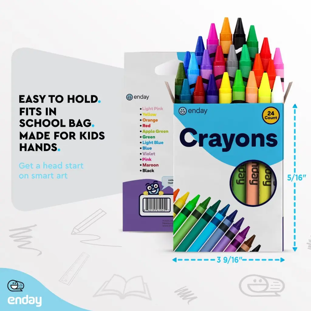 Enday 24 Count Crayons, For Kids & Teachers, Easy To Hold Toddler Crayons, Premium Non-toxic
