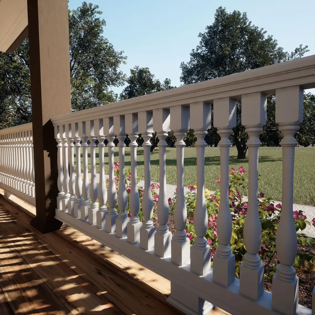 The 5" system top rail measures 8 feet in length. It is precision molded and reinforced at the core with heavy-duty vinyl, which enriches the 5" balustrade with superior strength and structural integrity. The 5" top rail compliments all baluster styles within the system and becomes a versatile addition to porches, patios, balconies, decks, and more. The 5" system top rail is crafted in durable urethane, a molded polymer material that possesses a beneficial closed cell structure that locks moisture out. Urethane rails withstand moisture that can cause warping, splintering, peeling, staining, mildew and rotting.Will not crack, warp, or splitProtected from natural elementsOutlasts Plastics, Steel, Rubber and AluminumLifetime WarrantyLightweight and easy to install