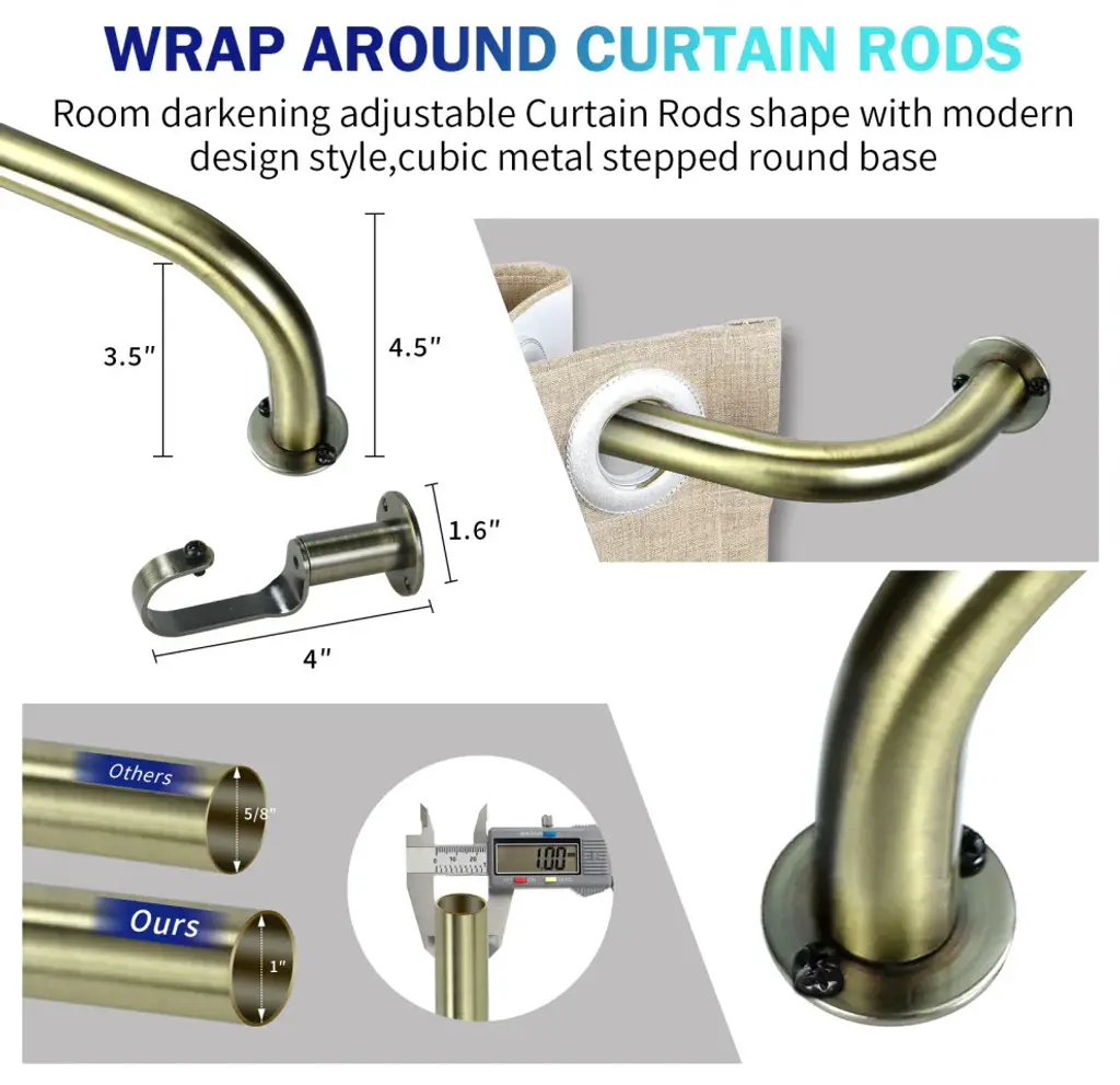 Energy Saving Wrap Around Black Out Return Adjustable Window Curtain Metal Rod, Antique Brass, 28"-48"