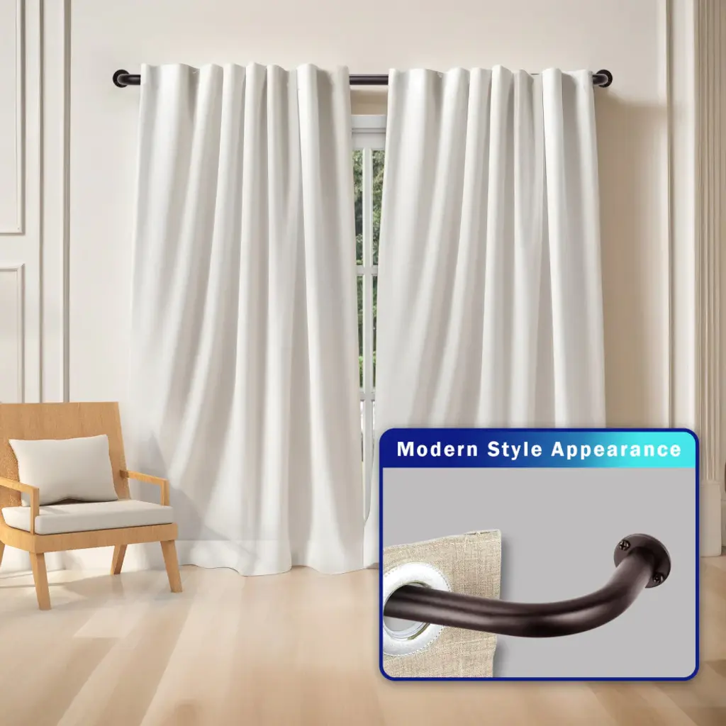 ROOM DARKENING & SAVE ENERGY: Wraparound design, NO GAP between wall and window drape. Block sunlight, reduce noise, no draft, no heat loss. Saving EnergyHIGH QUALITY: Rustproof, made with all Premium HIGH QUALITY METAL. Heavy Duty Sturdy Window Rod Set. Can hold up to 30 lbs.SIZE: 1" diameter, Extendable from 28"-48" / 32"-52" / 48"-84" / 52"-96" / 84"-120" / 96"-144". Adjustable Projection form the wall is 4" - 5". EASY SET-UP: All mounting hardware included, 1 telescoping curtain rod, screws, drywall anchors, and installation instructions. One additional center support bracket comes with 48"-84" / 52"-96" / 84"-120" / 96"-144" rod set. It can be wall or ceiling mounted indoor or outdoor. Install in minutes.MODERN DESIGN: The minimalist design gives this rod set an unique industrial look. Comes with multiple color options for designer: Matte Black, Glossy White, Oil-rubbed Bronze, Brushed Stainless Steel, Antique Brass, Antique Silver/Pewter, Antique Gold, and Renaissance Gold.