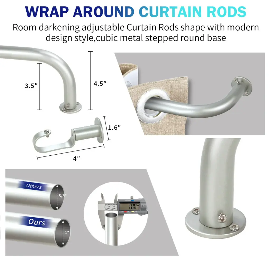 Energy Saving Wrap Around Black Out Return Adjustable Window Curtain Metal Rod, Pewter, 28"-48"