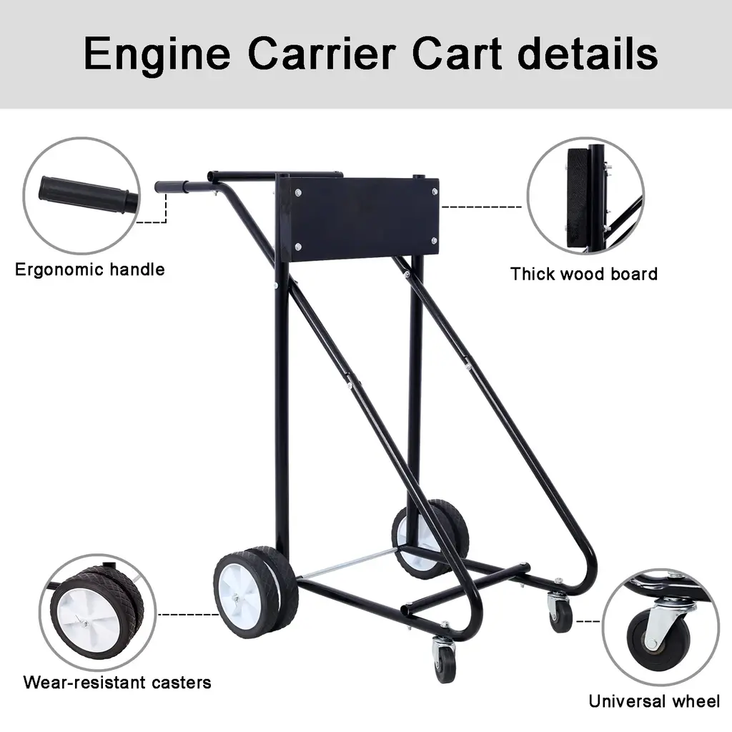 Engine Carrier Cart Dolly With Wheels Outboard Boat Motor Stand For Storage, 315lbs Weight Capacity - Black