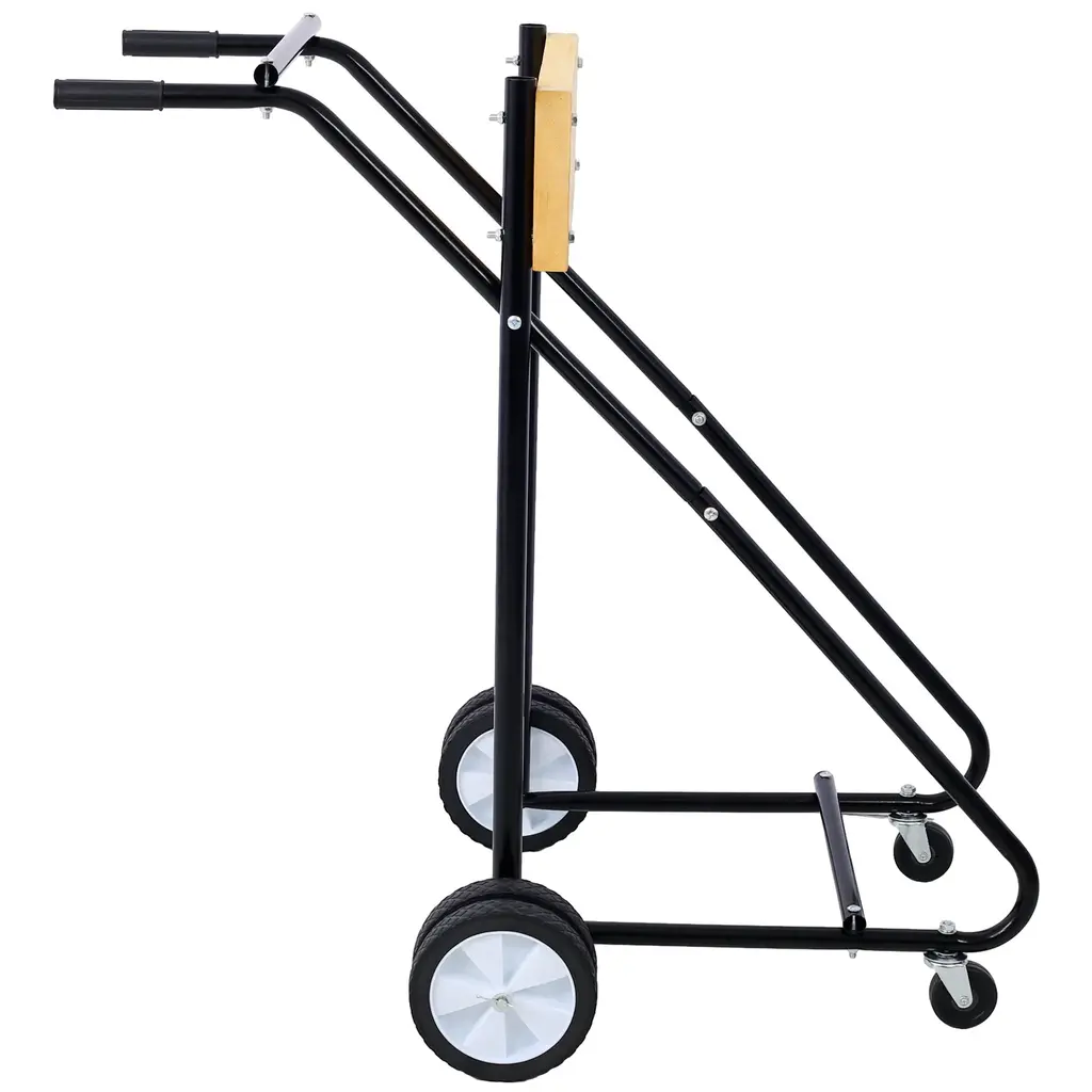 STEEL CONSTRUCTION: Crafted with durable steel tubes, our boat motor cart is built to last. it can hold up to 315lbs, providing reliable support for your outboard motor. The hanging board is constructed with solid wood, ensuring even greater strength and stability.WHEELS FOR EASY MOBILITY: Our boat motor cart features 2 universal front caster wheels and 2 rear wheels, each composed of 2 single wheels. This design allows for smooth and effortless movement, making it easy to transport your outboard engine wherever it's needed.VERSATILE USAGE: Designed with versatility in mind, our boat motor cart is perfect for various applications. Whether you need to store, maintain, or transport your outboard engine in the garage, this cart is up to the task. It provides a convenient and reliable solution for holding your outboard motor during repairs or maintenance.ASSEMBLY REQUIRED: Some assembly is required for the boat motor cart. The overall dimensions of the cart are approximately 28.9'' W x 42.5'' D x 42'' H. We recommend not fully tightening the screws until all parts are properly aligned, ensuring a secure and stable assembly.ERGONOMIC HANDLE: Equipped with two ergonomic handles, our boat motor cart allows for comfortable and convenient steering and movement. With these handles, you can effortlessly navigate the cart around your garage, providing ease and convenience during use.Descrption:Product Name:Outboard Boat Motor StandMain Color:BlackMain Material:MetalPacking list:Outboard Boat Motor Stand x 1