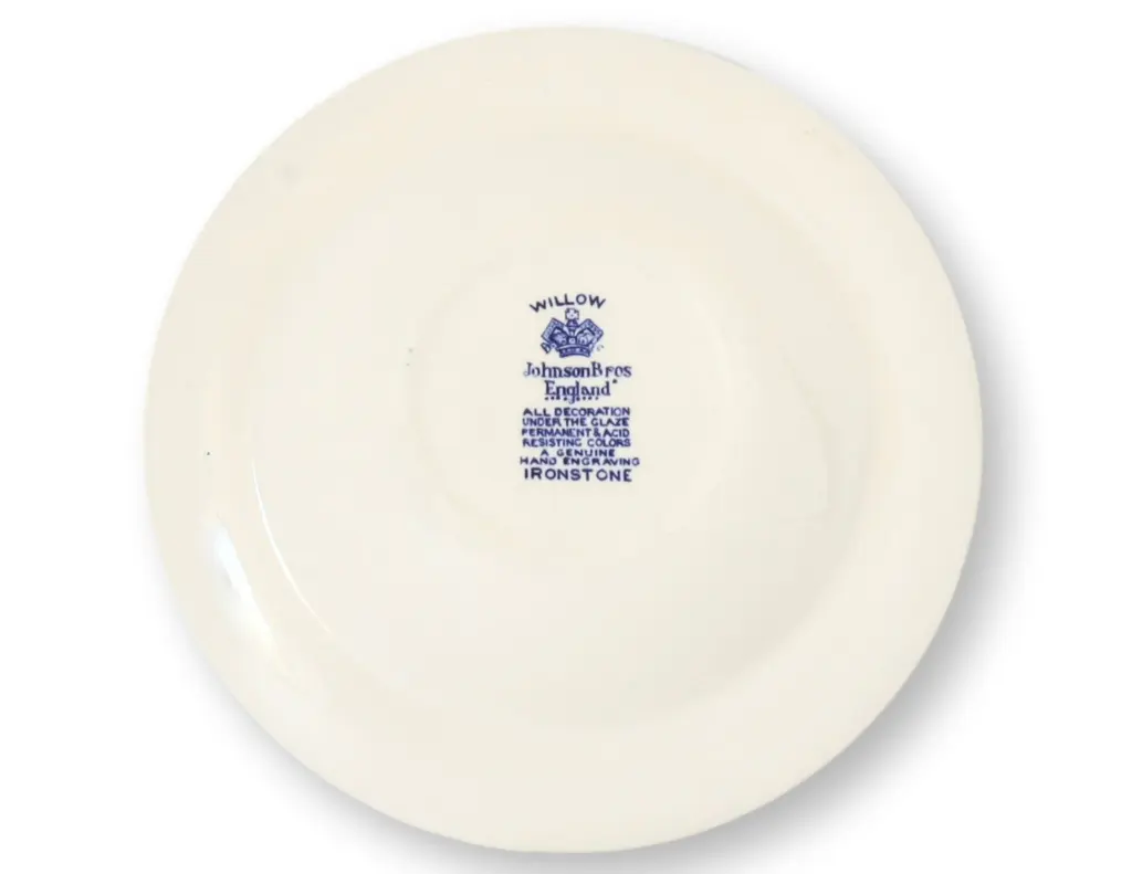 Classic English Blue Willow breakfast or soup and salad set by Johnson Bros., featuring six rimmed bowls and a generous serving bowl. Decorated in the timeless cobalt chinoiserie pattern, each piece reflects the heritage and charm of traditional English tableware. Ideal for morning meals or casual entertaining with vintage flair. All pieces are backstamped and ready to use. Dimensions: Bowl, 8.25"Dia x 2.75"H; Cereal Bowl, 6.25" Dia x 1.5"H; Toast Plate, 8"Dia x .5"H.