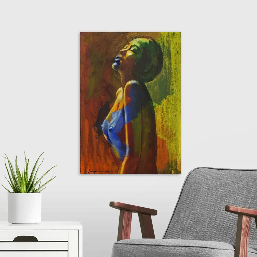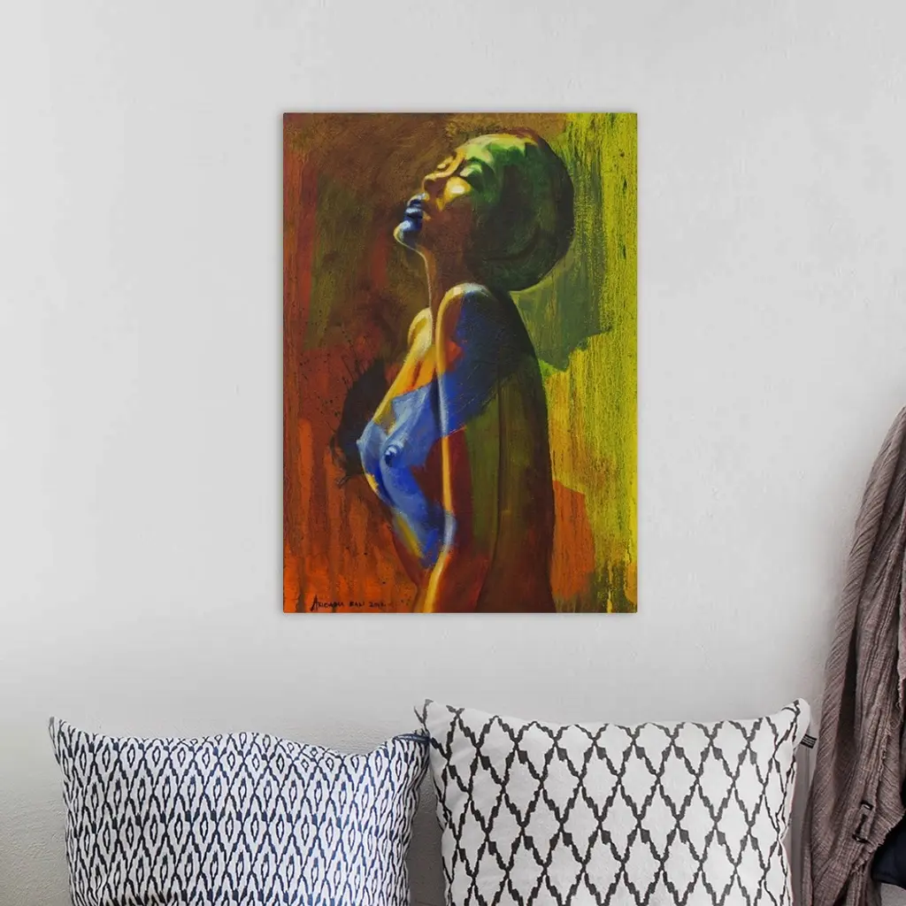 'Just enjoy life regardless of situation and condition,' encourages Aricadia through his art. 'Happiness and sadness reside only in her mind and she simply follows them wherever they may lead, just like flowing water.' Mixing oils with acrylics, Aricadia captures the intimate intensity of sensuality and pleasure with this portrait. 'I used red to express heat and I combined it with green and yellow to give the composition a balanced effect, because in life there must be balance.'