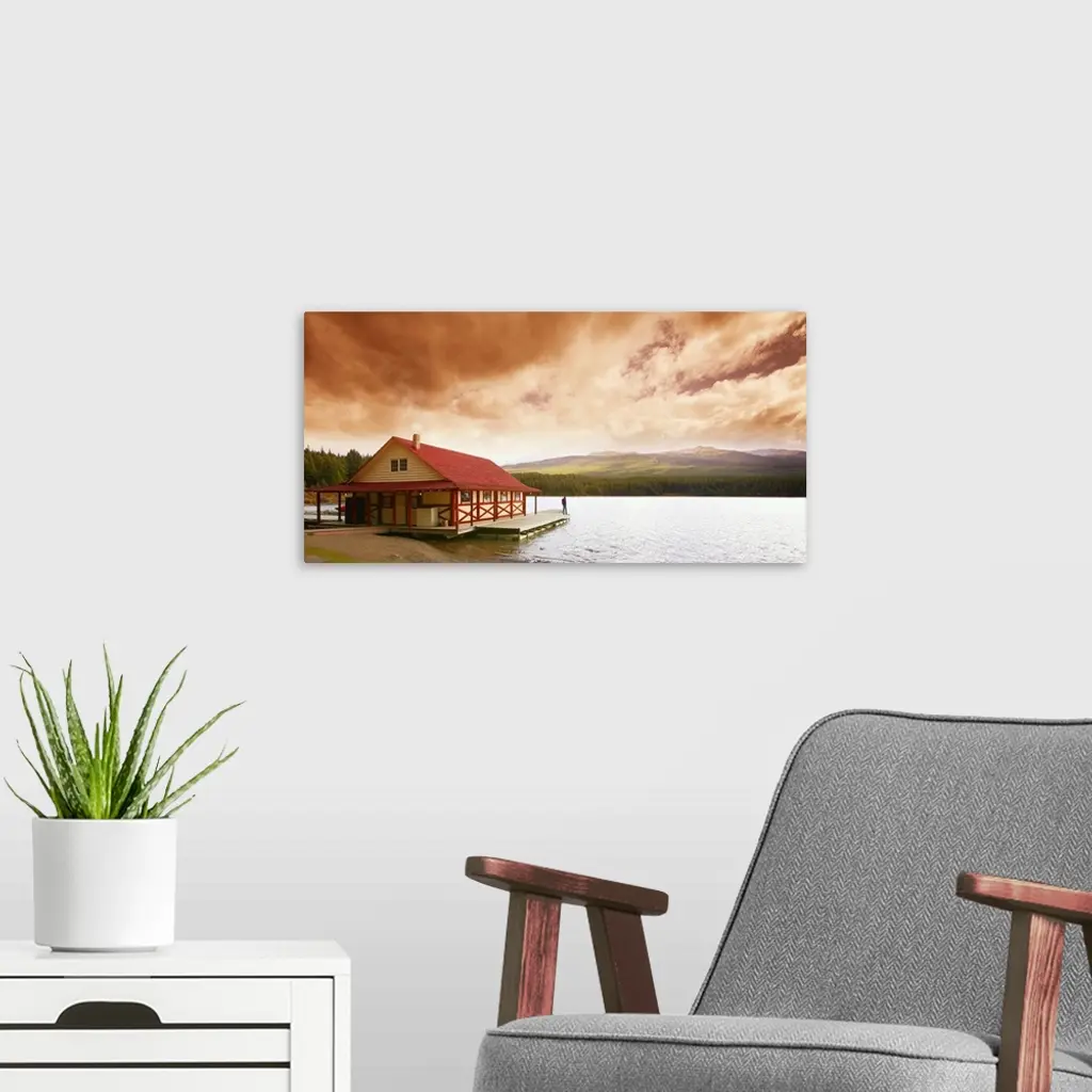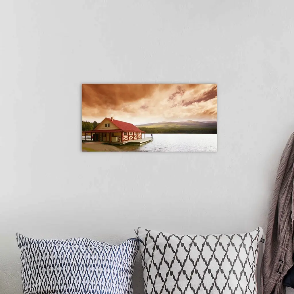 Enjoying A Mountain Lake View wall art for home and office decor. Discover canvas art prints, photos, mural, big canvas art and framed wall art in GreatBigCanvas.com's varied collections.