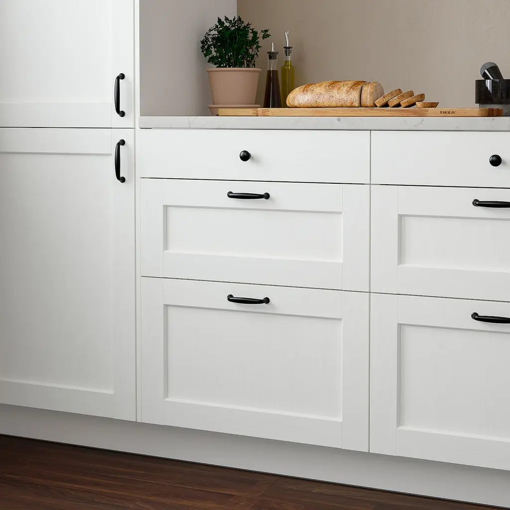 ENKÖPING Drawer front - white wood effect 24x15 ". Foil gives a smooth and practical surface that is resistant to moisture and staining and is easy to clean. 25-year Limited Warranty. Read about the terms in the Limited Warranty brochure. To be completed with knobs or handles.