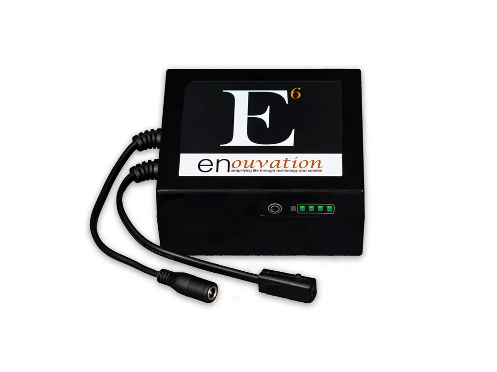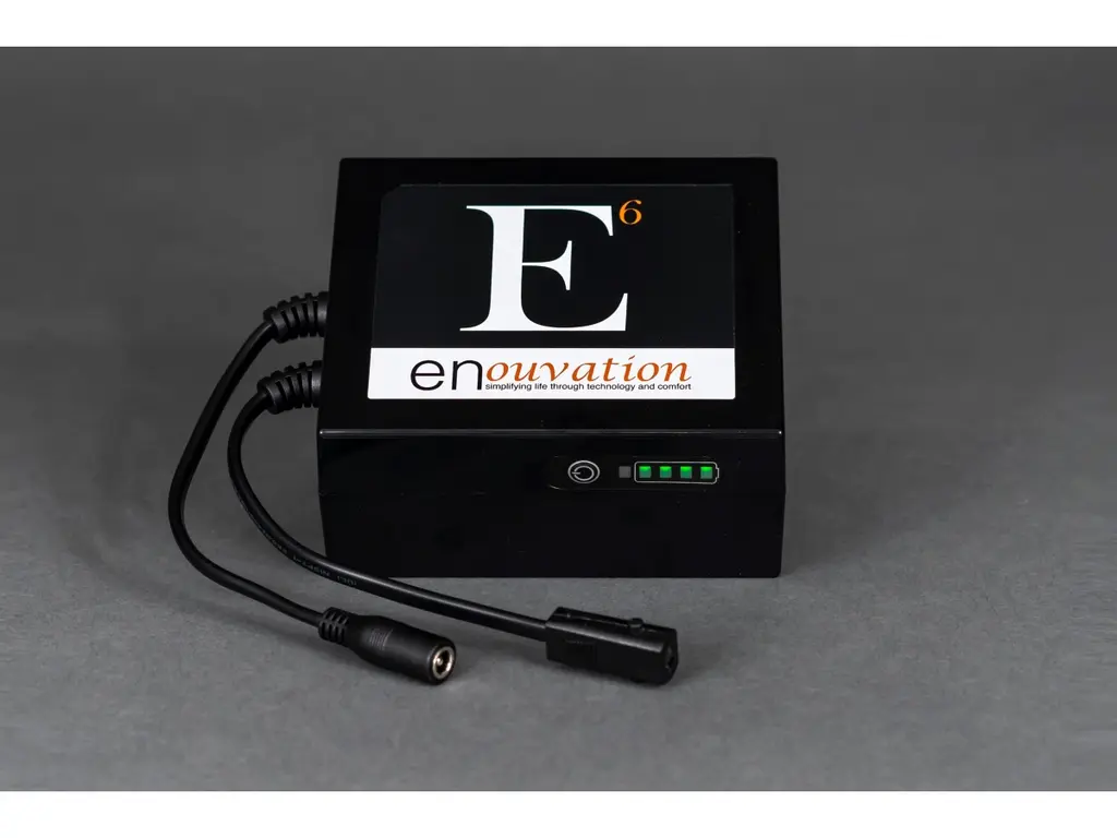 The E6 Power Pack from Enouvation offers you the ability to go cordless on Power Motion furniture. This means you can float a Power Motion piece of furniture without having to see those unsightly, industrial cords. Enouvation Power Packs are tested to multiple UL standards and certified, having gone through rigorous testing. Each Power Pack comes with its own charger in box. The frequency with which your Power Pack will need to be recharged varies greatly on the amount of use. Patents pending.