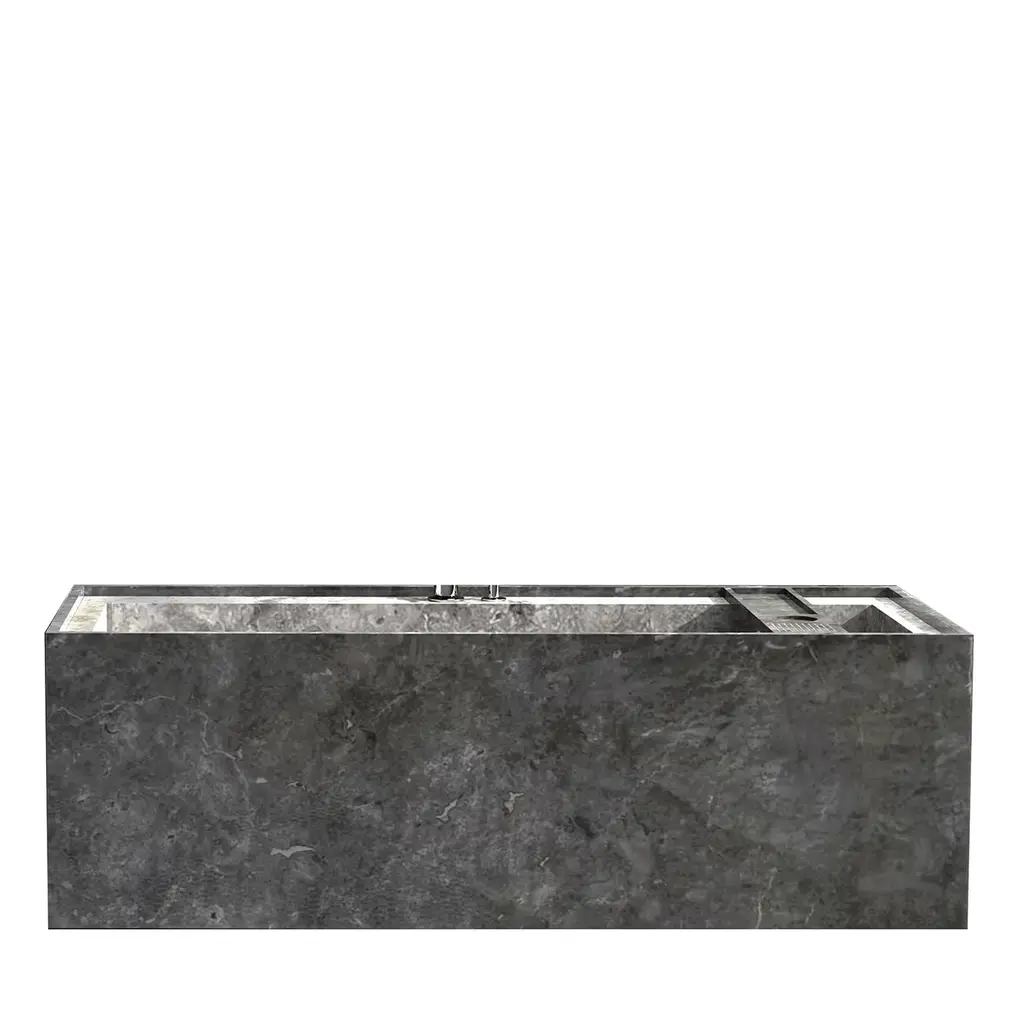 Entity Ovale bath by Marmi SerafiniMaterials: Pietra Lavica marble.Dimensions: D 105 x W 180 x H 50 cmAvailable in other marbles.Tap not included.Entirely made from one piece of stone, with the matching waste-drain cover this bath has generous dimensions that draw the attention.Ideal placement is in the center of the room, it can comfortably accommodate two people.Marmi Serafini is located in a small city named Chiampo, internationally well known for its marble production.It's origins stem from Mr. Bruno Fortunato's passion for marble which was then passed on to his two sons, Alessandro ad Luca, who eventually took over.Marmi Serafini has, with the passing of time, transformed into one of the most innovative marble factories, producing extremely design-driven products and objects.